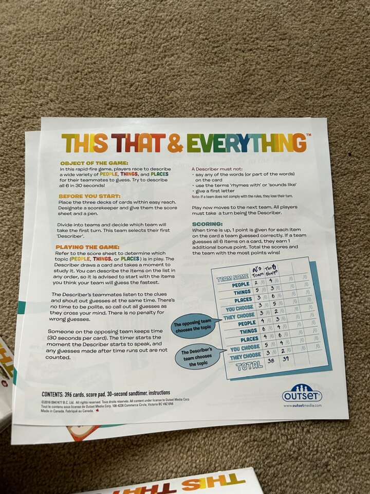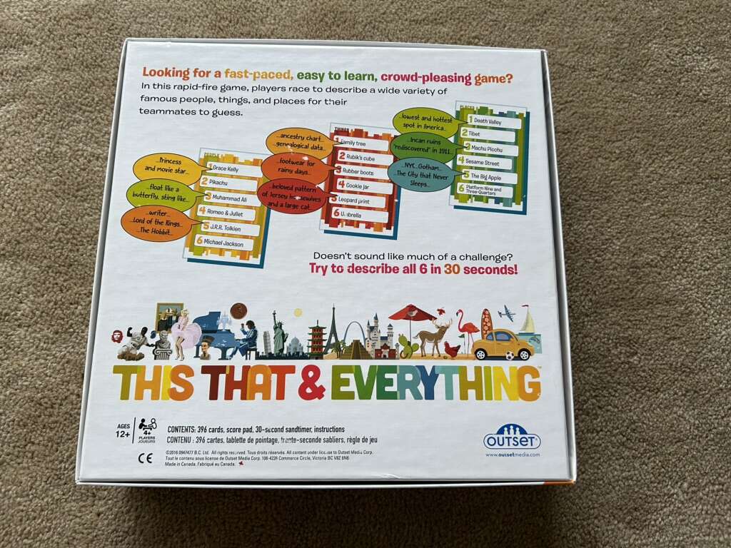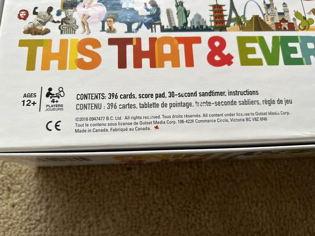 NEW This That & Everything: The classic party game of people, things, and places. Ages 12+, 4+ players. By Outset, 2016. NEW, unplayed condition. Text only. Cash or Venmo.