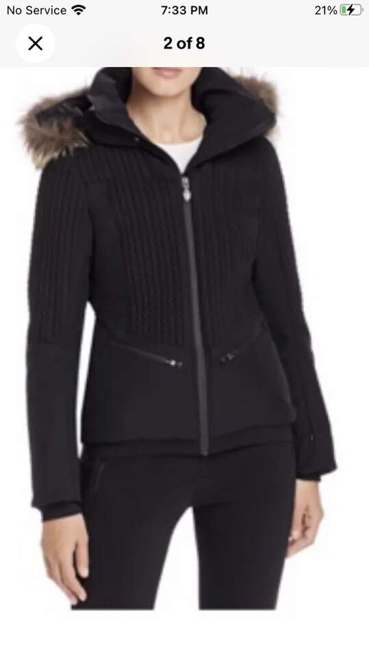 Water repellent fabric and fur-trimmed hood help keep the elements out