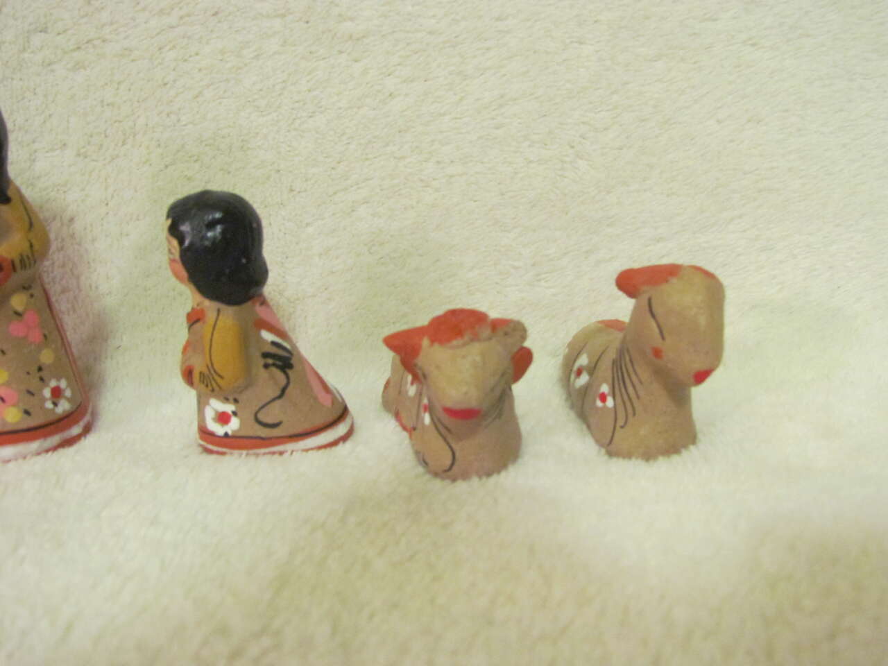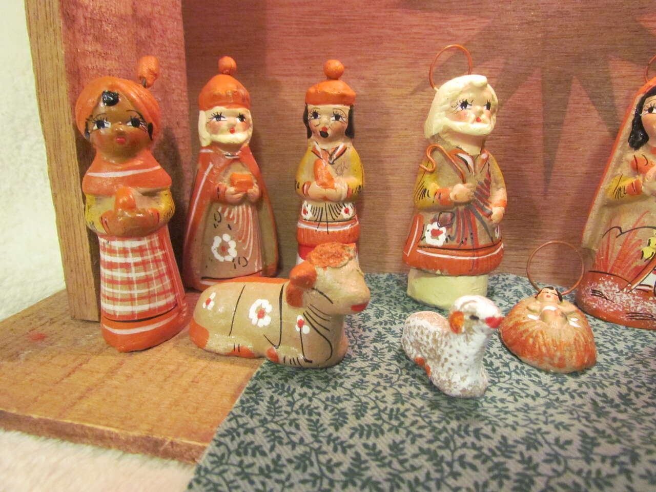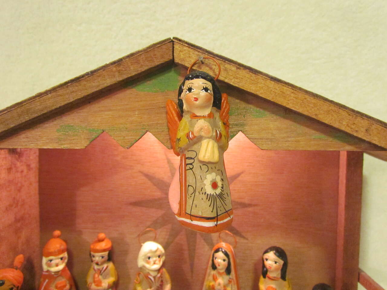 Figurines are from 1” to 3 ½” tall. Gently pre-owned and displayed for around 20 Christmas seasons. The angel’s left wing was broken, but glued back together and it appears one of the cows is missing one ear. Other than that, this set is in very nice condition.