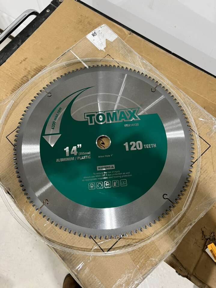 VenmoNew - open box, lost freight, Amazon $69.00 Ideal for cutting Plastic, Thin Aluminum and Non-Ferrous Metals. Less than 1/8 Wall Thickness Construction grade carbide teeth provide maximum resistance for longer life Electrophoretic Coating reduces the rusting and corrosion TCG Grind for a durable and smooth cut on non-ferrous metals, aluminum, and plastic items Quality Guarantee, Limited Lifetime Warranty by TOMAX