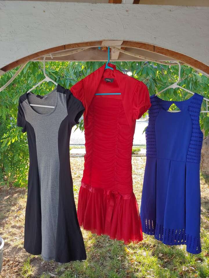Se venden hermosos vestidos para niñas son talla 10,12 y XS están en muy buenas condiciones $8.00 dólares cada uno o los 3 por $20 dólares uno si tiene preguntas llamar o mandar mensaje al 801-512-6776