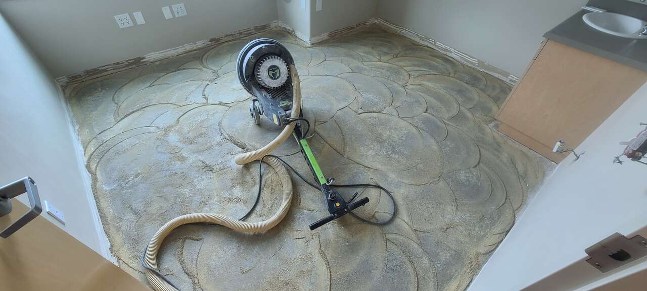 Floor Prep - We will grind the entire sub floor and make sure there are no issues. Poor floor prep is the number one reason that a floor will fail.