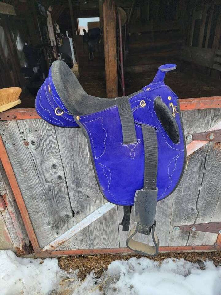 New Australian synthetic western saddle. Comes with a pad. 200.00 dollars..willing to trade, let me know what you have to trade.
