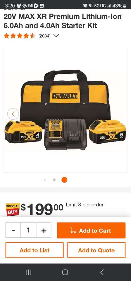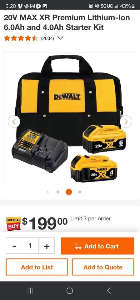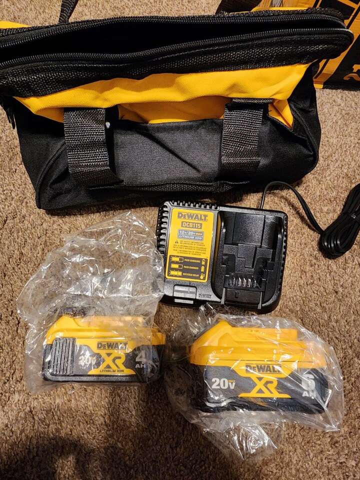 New Dewalt 20V MAX XR Lithium-Ion Premium 6AH and 4AH Starter kit. Includes one 4AH battery, one 6AH battery, charger, and bag. Model Number DCB246CK.