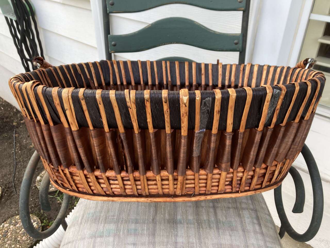 VenmoLarge Mahogany Wood and Wicker Basket With Large Handle
