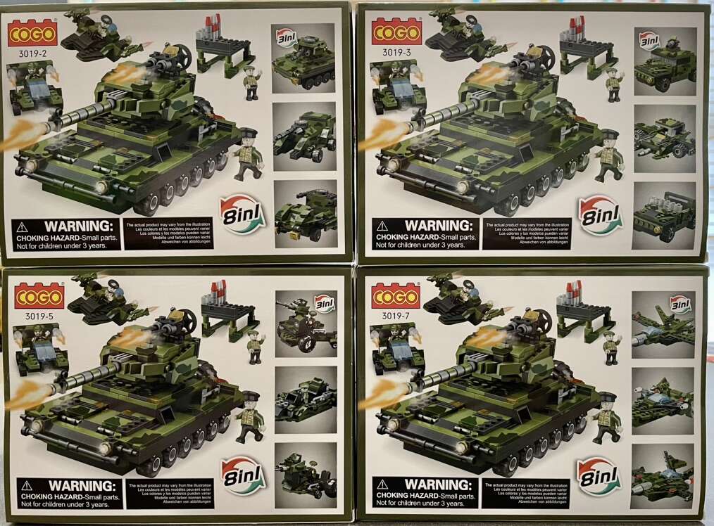 Each set is roughly 100 pcs. military Vehicles include: Tanks, Artillery, Jets, Hummers, etc