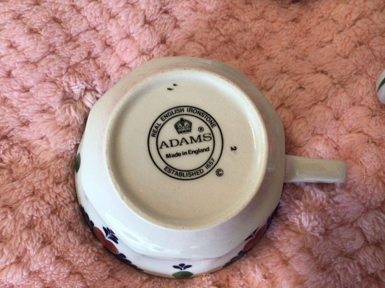 This listing is for cups made by Adams China Co., English ironstone, excellent condition, 13 available, sold individually for $4 each. Beautiful quality pieces.