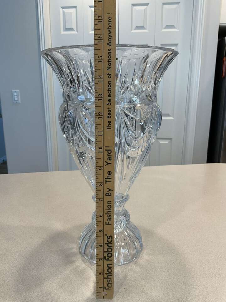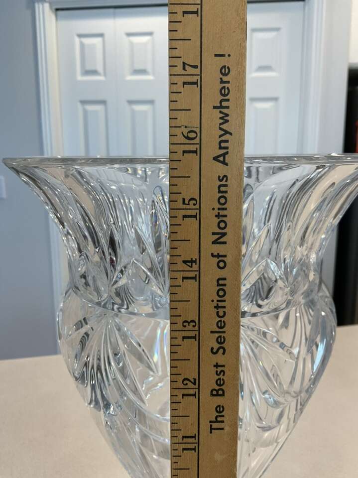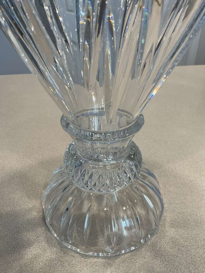 Beautiful crystal vase 16 inches tall. It sparkles with the rainbow colors. It’s very stunning and an eye catcher.