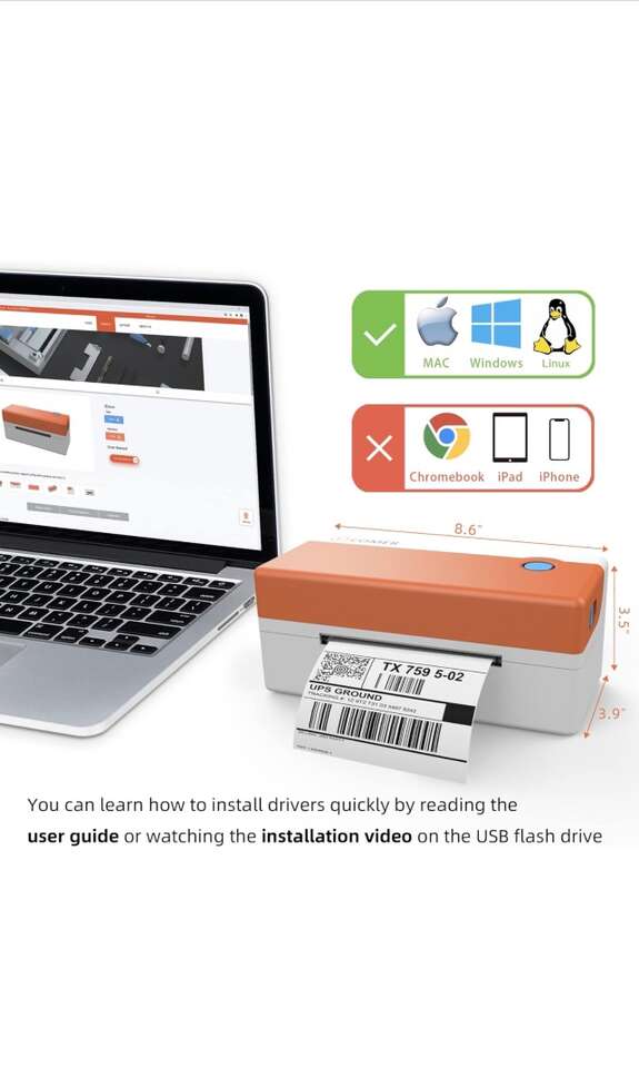 Label printer compatible with both Windows (7 and newer) and Mac (10.11 and newer) devices.\