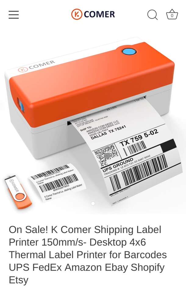 K Comer Shipping Label Printer 150mm/s- Desktop 4x6 Thermal Label Printer for Barcodes UPS FedEx Amazon Ebay Shopify Etsy