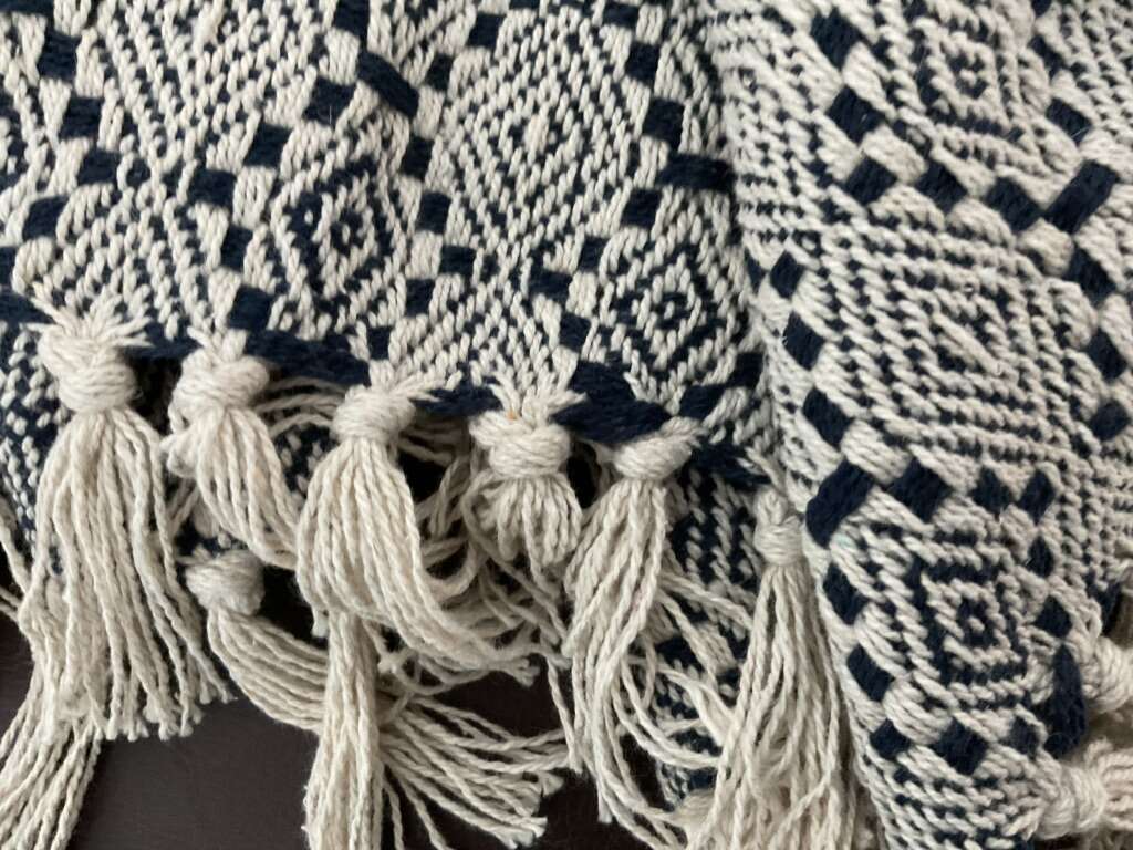 Beautiful cotton blue and white tassel throw blanket. New 60x49 inches