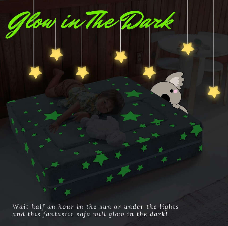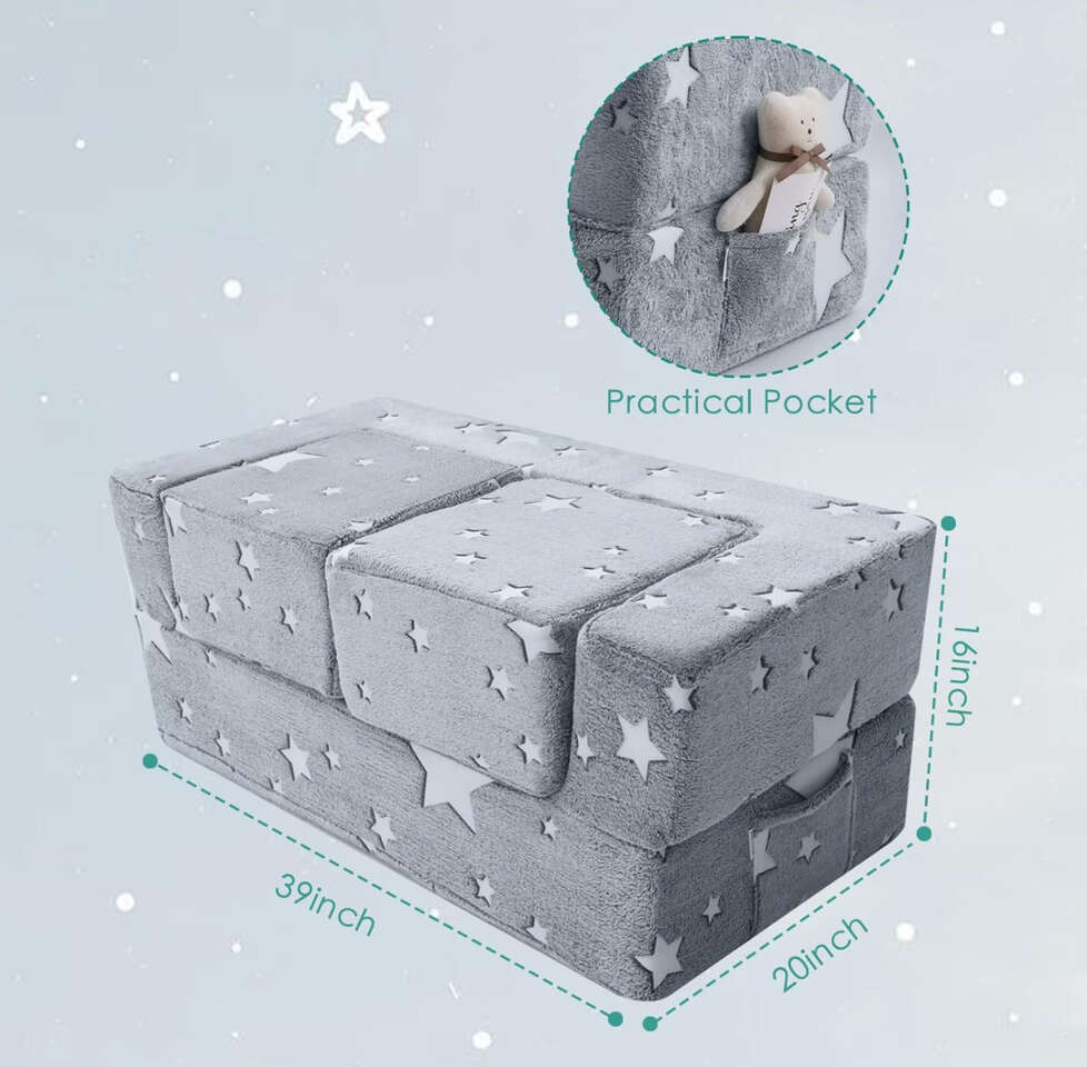VenmoKids Sofa Couch, Modular Star Baby Couch Glow in Dark, Toddler Fold Out Play Couch for Playroom Furniture