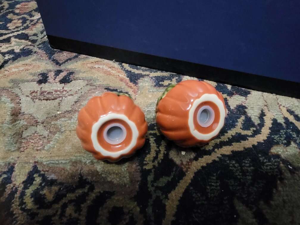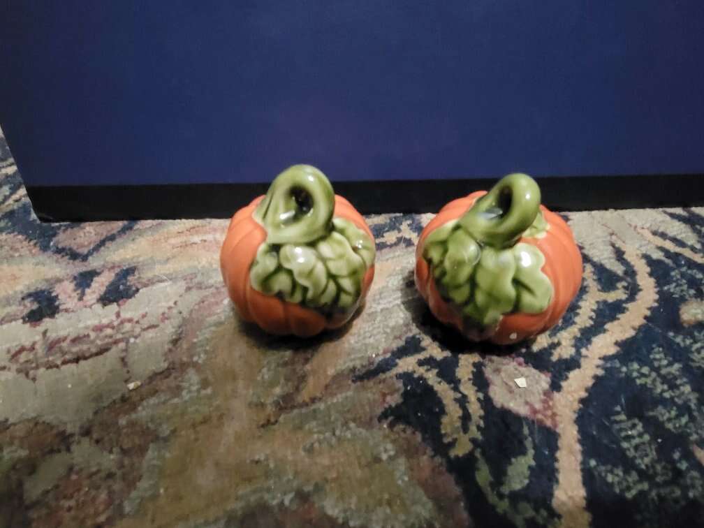 Vintage Ceramic Orange Pumpkin Salt and Pepper Shakers Fall/Thanksgiving Decor. Text is best 801-645-3225
