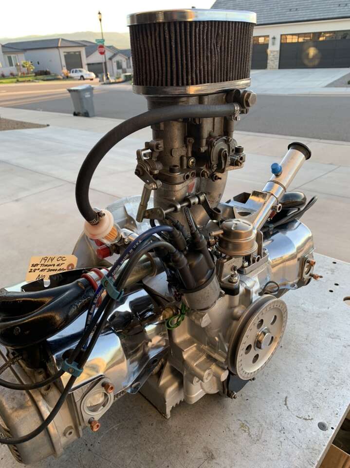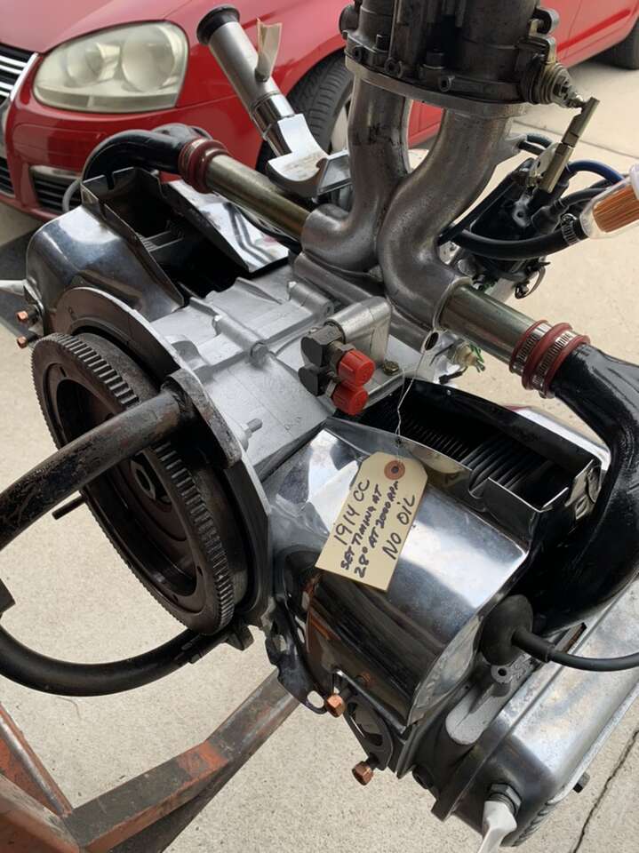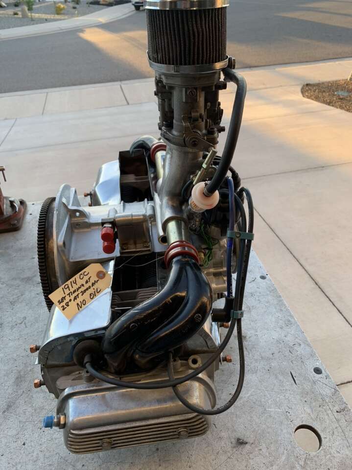 Volkswagen type 1 long block Complete type 1 engine 1914CCS New cylinders, pistons, and rings New valves and valve guides New valve, springs and keepers New lifters New camshaft All new bearings/mains/ rods/cam New fuel pump New oil pump New spark plugs New points and condenser 09 distributor Two barrel Delorto carburetor Dual port intake, manifold Set up for remote oil cooler Power pulley Motor is set up for remote case vent system