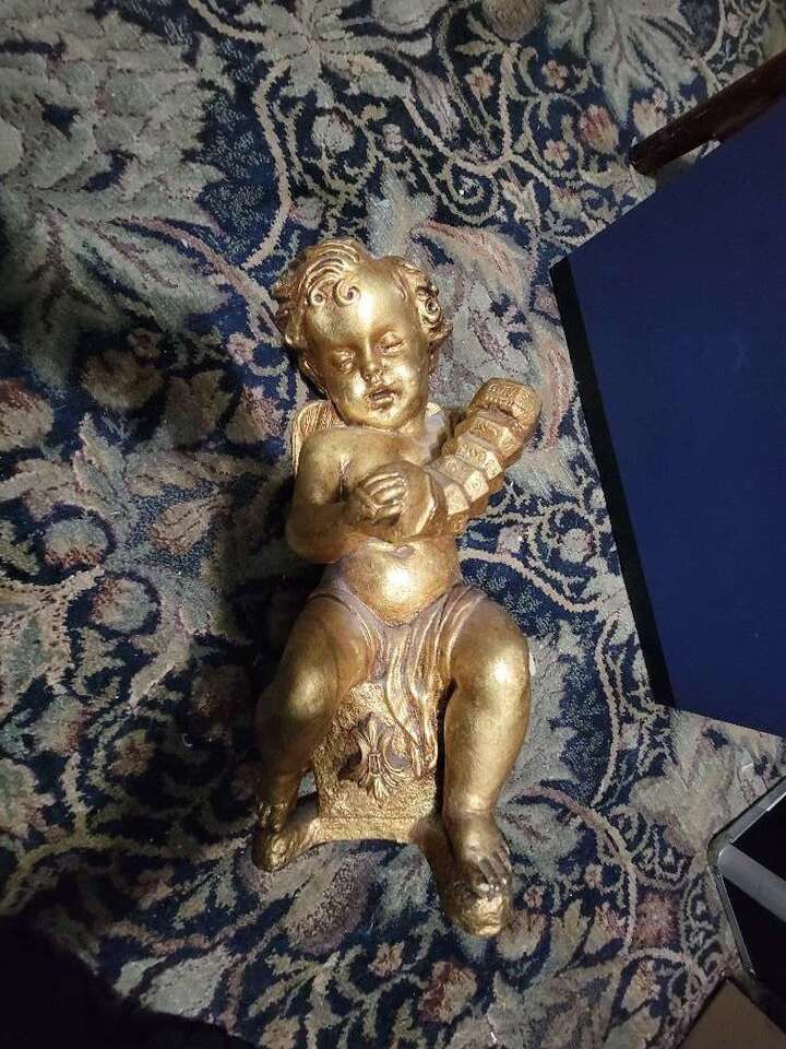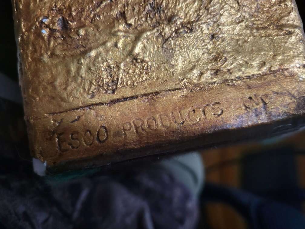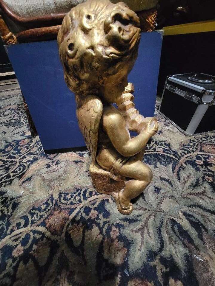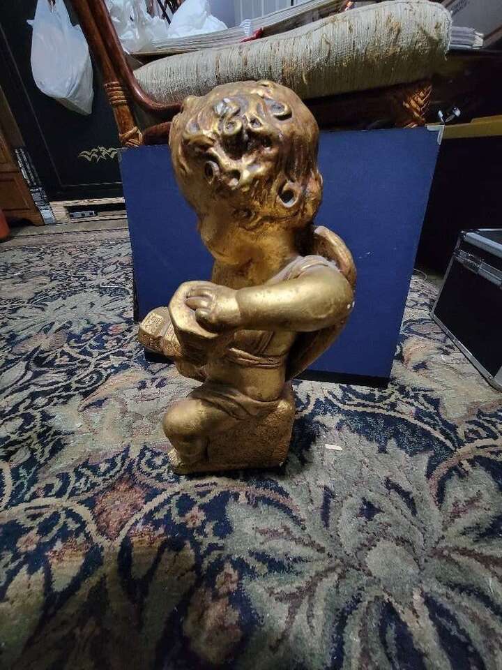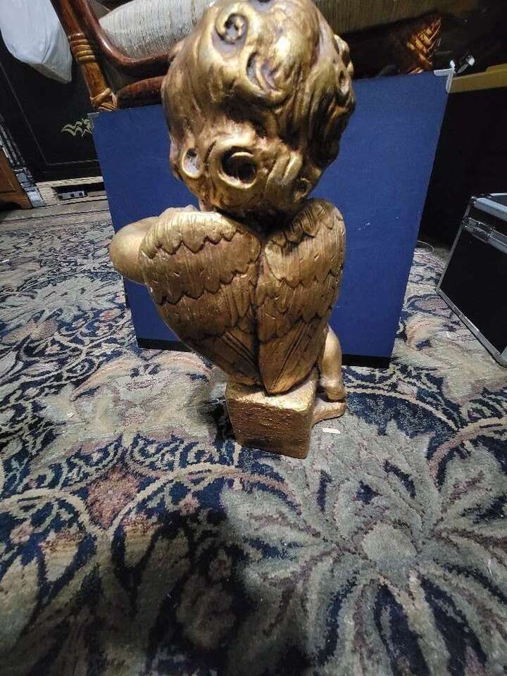 Vintage Esco products zinc angel statue, material appears to be heavy porcelain or equal type material. Small chips as seen in pics, rather heavy statue, 15 inches tall. $45.00 obo text is best. 801-645-3225