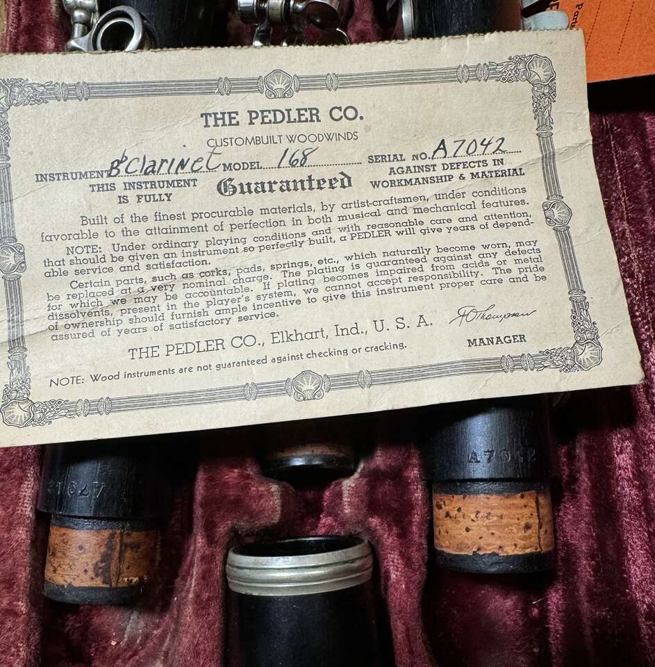 PEDLER AMERICAN WOOD CLARINET WITH ORIG MOUTH PIECE BLACK NEW LEATHER PADS GOOD CORKS.
