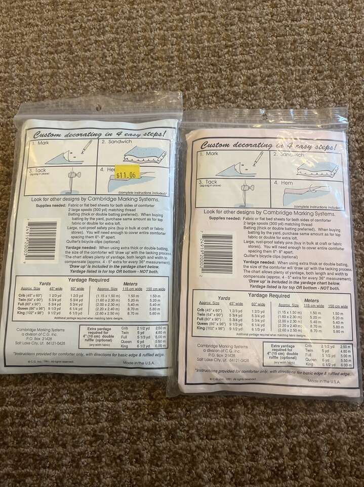 Brand new never used Two fabric templates Diamonds Hearts Creates any size bedspread or comforter