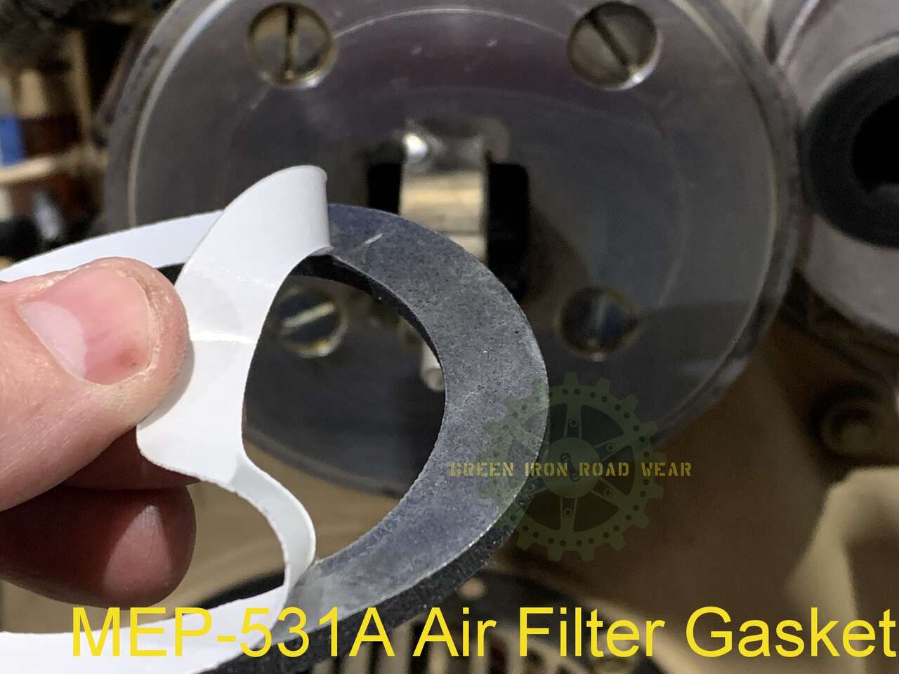 Notes: Care should be taken when peeling off the paper backing to expose the adhesive, or else it may be possible to strip the adhesive from the gasket. For easier maintenance, the gasket can be adhered directly to the air filter, but new gaskets will be needed when the air filter is changed.