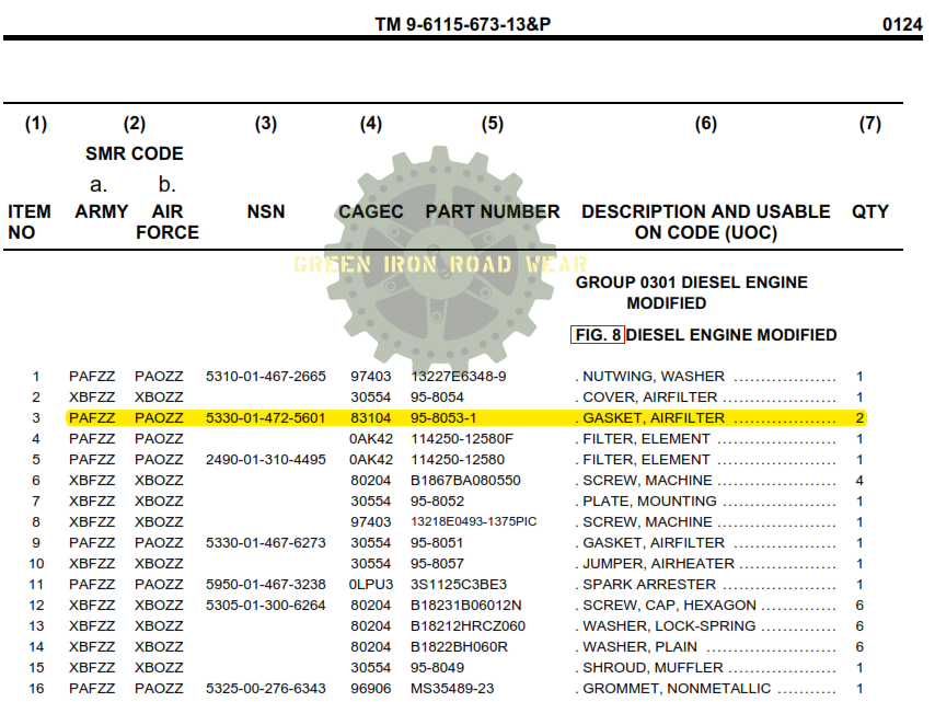 This is item #3 as listed in the Technical Manual (TM) 9-6115-673-13&P “Operator and Field Maintenance Manual (Including repair Parts and Special Tools List)” on Figure 8 on page 0124-2 (PDF Page #488).