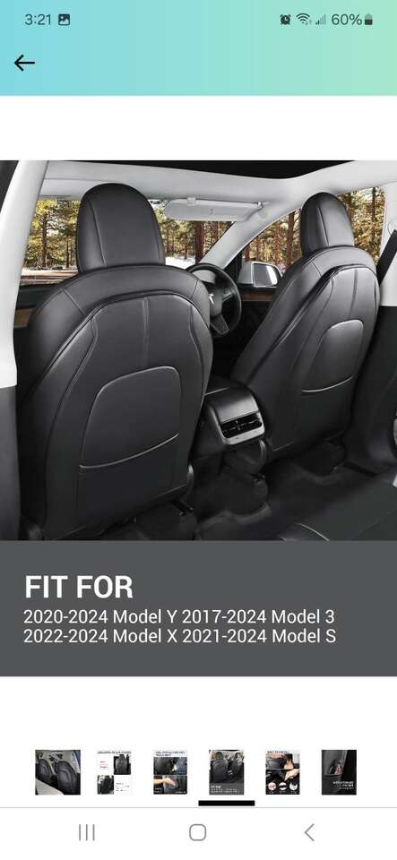Tesla Model 3/Y/S/X Leather Seat Back Protector with pocket. Black. New and unused. $40 obo