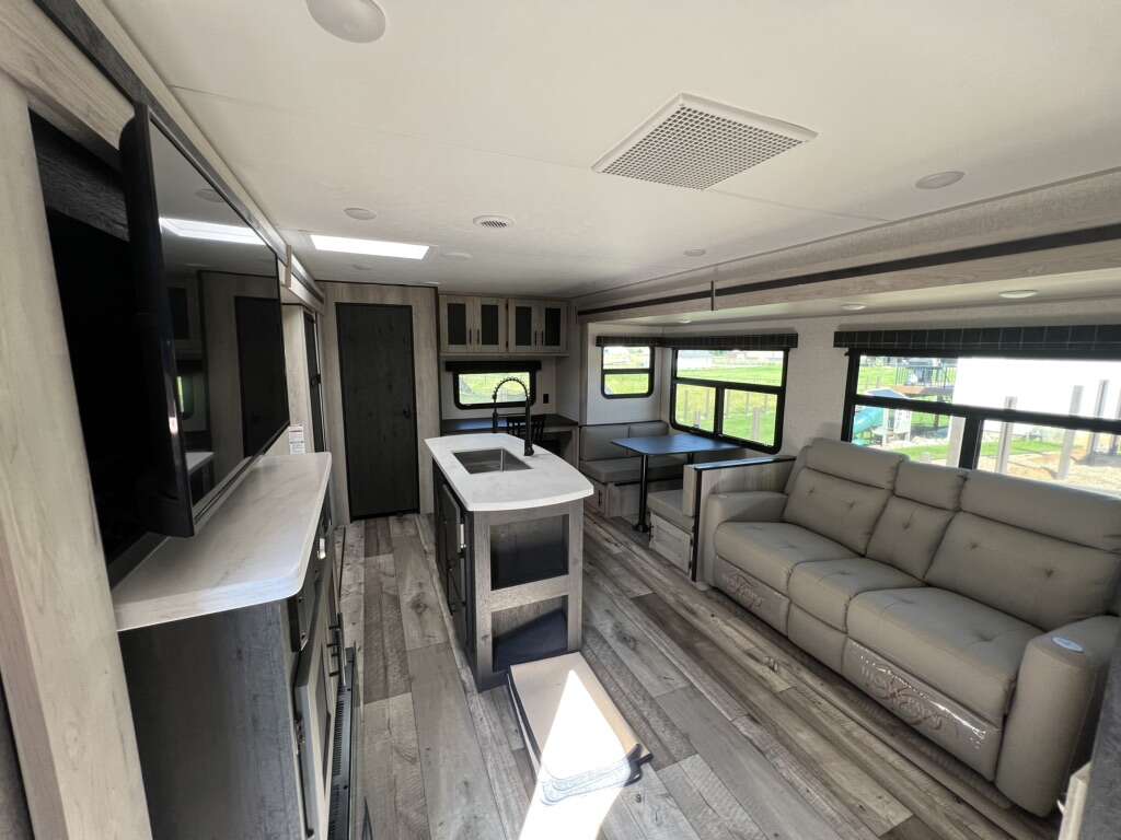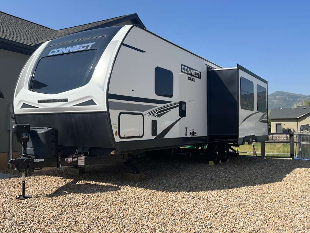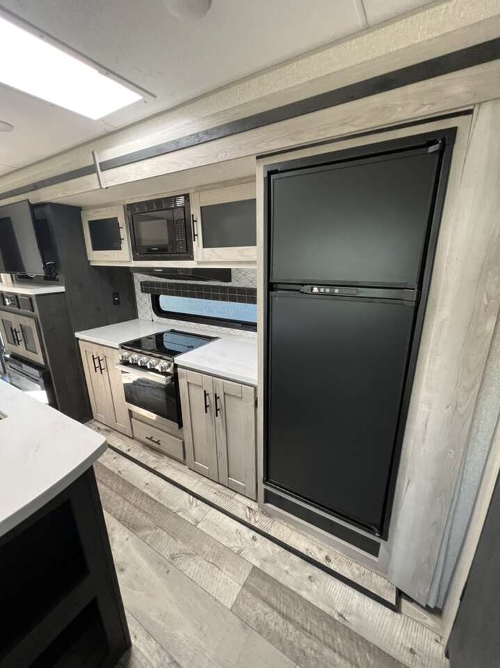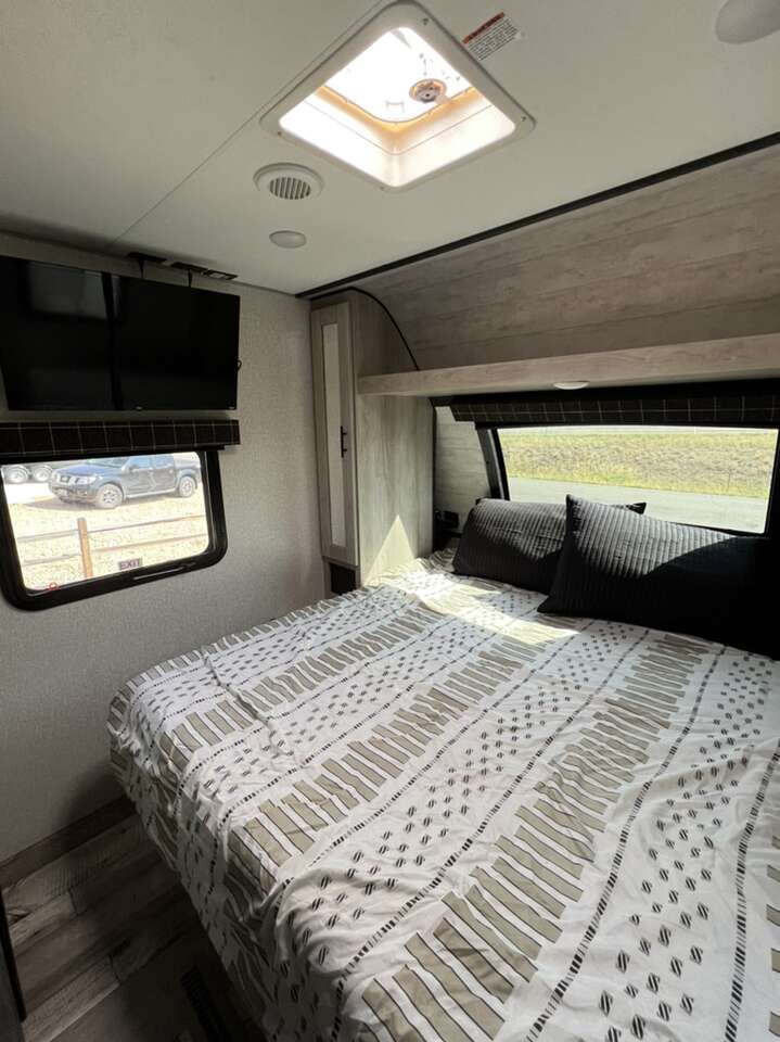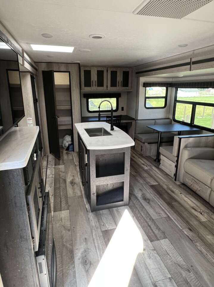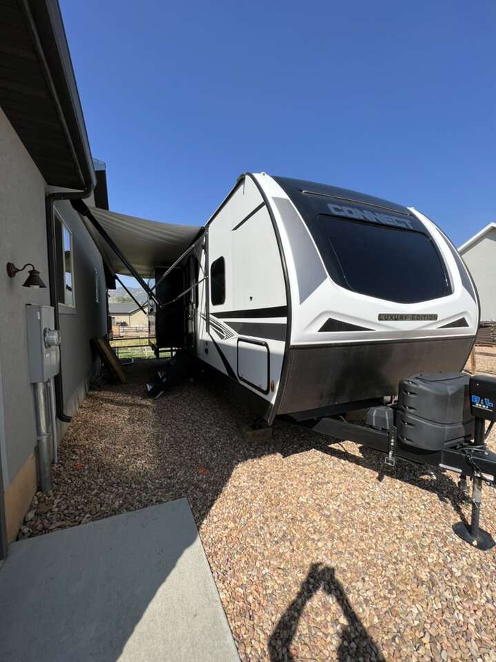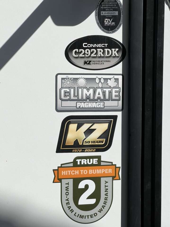 2022 K-Z Connect 292 RDK Luxury Edition. This camper is pretty much brand new, only used four times. Comes loaded with with the BAL SS 5.1 electronic stabilizing system, equaflex suspension, climate control package, large storage full pass through area in front of camper, solar with inverter. Two tv's one in main living, one in bedroom, electric fireplace, couch with heat and massage, several built in usb ports, led lighting in main area as well as under awning. Has apposing slides which makes the main area feel very large. Come take a look and see just how nice it is and all the features it nas. KZ Connect travel trailer C292RDK highlights: Opposing Slides Desk with Chair Walk-In Pantry Outdoor Kitchen Kitchen Island Private Bedroom You are going to feel a very strong connection to this Connect travel trailer! With a king-size bed, ample living space, an indoor and outdoor kitchen, and an LED TV, what's not to love? Having a full bathroom is always a great convenience for any trailer, and this bathroom does not disappoint with its 30 x 36 shower, skylight, linen closet, and shelf with towel hooks. Another fun feature is the island in the kitchen. This gives you extra space to prep meals or clean up afterwards. If you have chosen to take your work with you on the road, then the desk with chair is going to be a very valuable feature for you, and since it is right in front of one of the rear windows, you can still see the beautiful outdoors while you work. The KZ Connect travel trailer is a trailer with extreme style and creative floorplans! Wrapped up in a lightweight package, the Connect has gorgeous interior décor and a high-end fiberglass exterior. You will find a fiberglass front cap with front windshield, a power front jack, exterior speakers, a spare tire, Equa-Flex suspension, nitrogen-filled tires, a leash latch, and a heated, insulated, and enclosed underbelly, and that's just the beginning. There is still plenty more to check out, like the well-appointed interior that has a kitchen skylight, an HDMI/USB charging port, LED motion-sensor lights, an electric fireplace, and upgraded linoleum flooring. Sleeps 4 Slides 1 Length 32 ft 3 in Ext Width 8 ft Ext Height 11 ft 4 in Int Height 6 ft 10 in Hitch Weight 750 Ibs