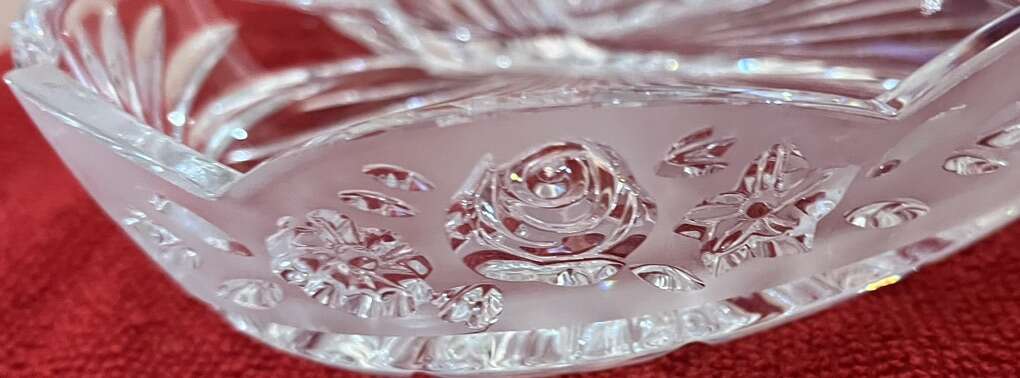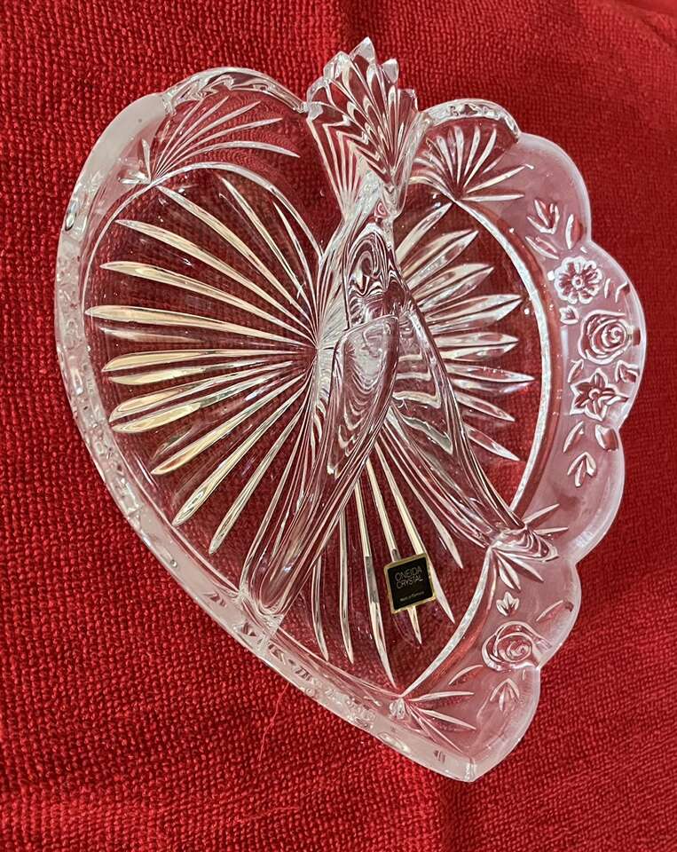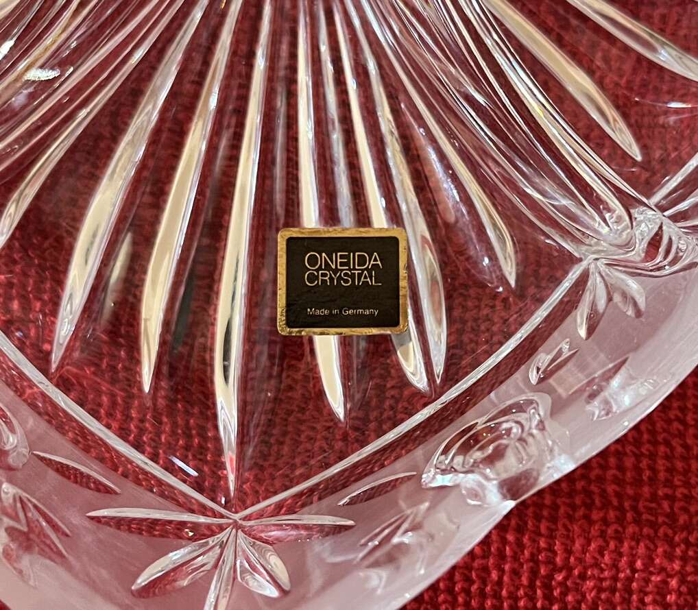 Venmo8” long x up to 8” wide x 2” deep Oneida Crystal bowl/candy/appetizer dish. Made in Germany. Used couple of times, no chips or damages. Super shiny, elegant, divided into 3 equal parts. Fits plenty of treats. $20