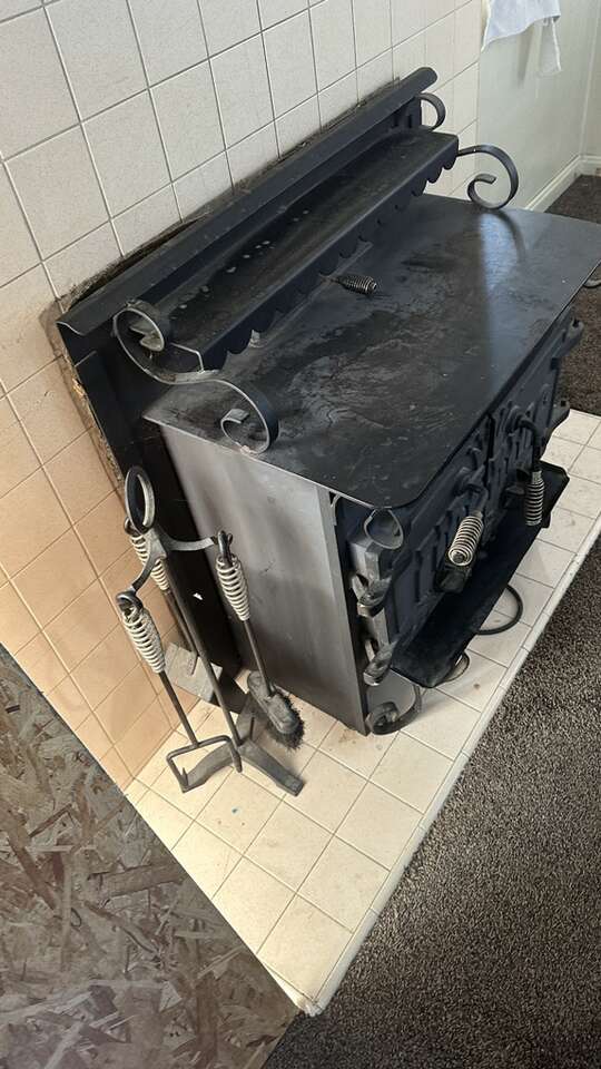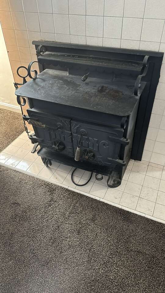 Fire king wood burning stove 28wide x 29high It can stand alone, but it was inserted in a fireplace