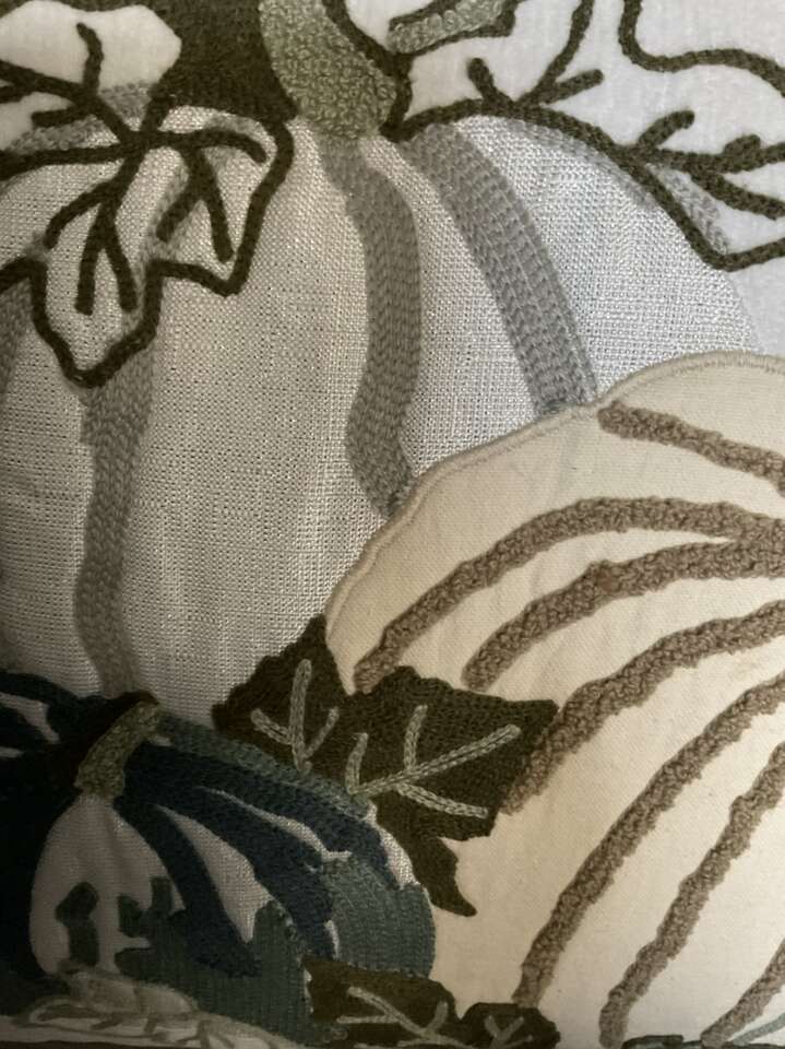 This fall pumpkin throw pillow is made of a velvety fabric and very soft. It measures 18x18 Beautiful design of neutral colors