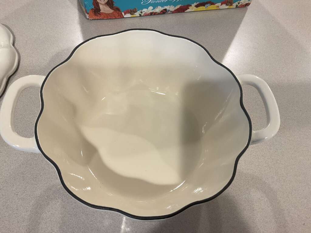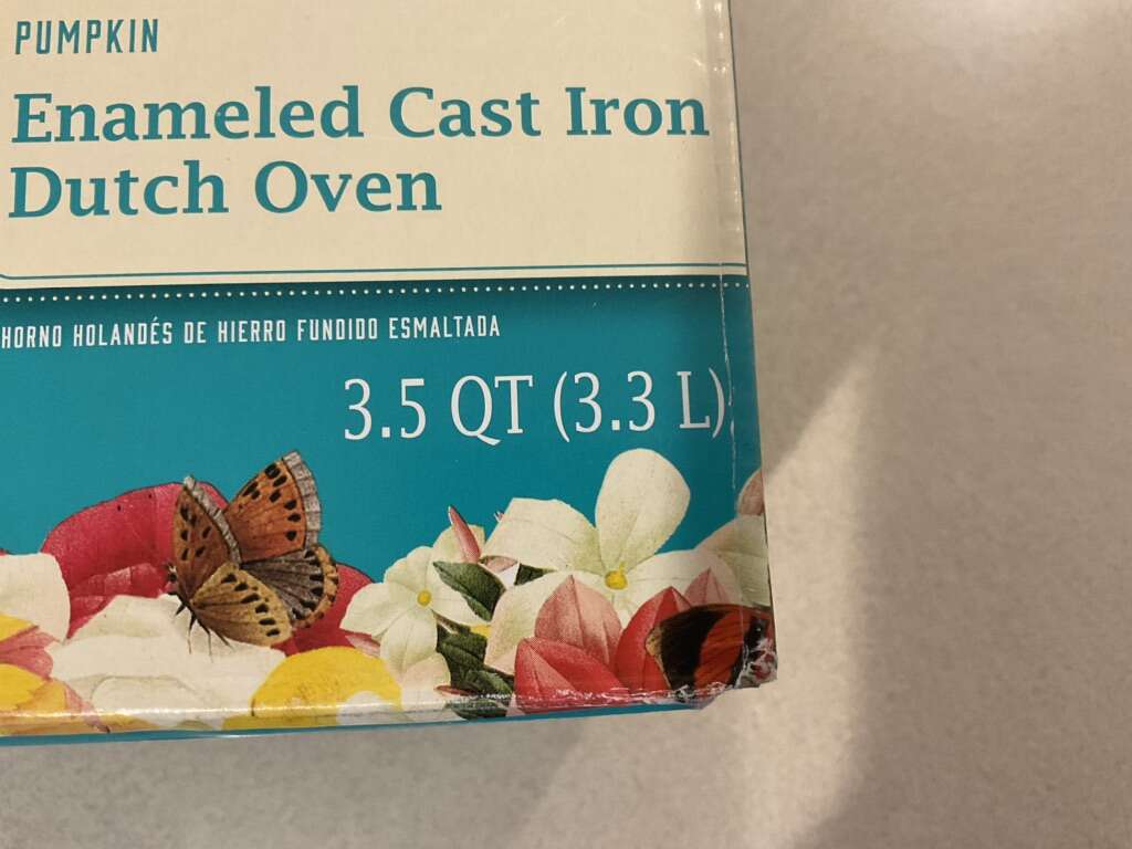 Pioneer woman linen pumpkin Dutch oven. It is the larger size at 3.5 quarts new in box. This size is extremely hard to find