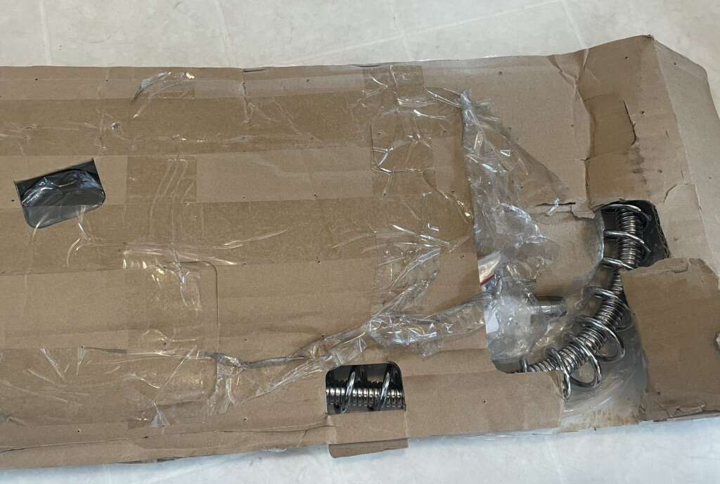 One of the packages opened up in shipping (see pictures) but it seems all items are there. Because of this unfortunately the item is sold as is. Regular cost of this online is $1,055, so save some money on a high quality item buying it here.