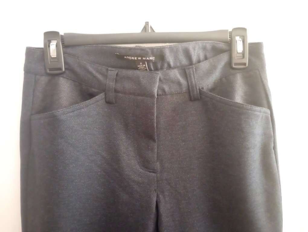 VenmoLike-New, women's straight leg (skinny) dress pants. Women's size 2. The color is kind of like navy/grey, or heathered navy blue. The brand is Andrew Marc. The material is: 57% polyester, 50% rayon, 3% spandex. In Like-New, excellent condition and from a pet and smoke-free home. I don't think these were ever worn. $10 cash or Venmo. Will hold with Venmo. Text if interested. Feel free to take a look at my other ads-lots for sale, including lots of women's clothing.