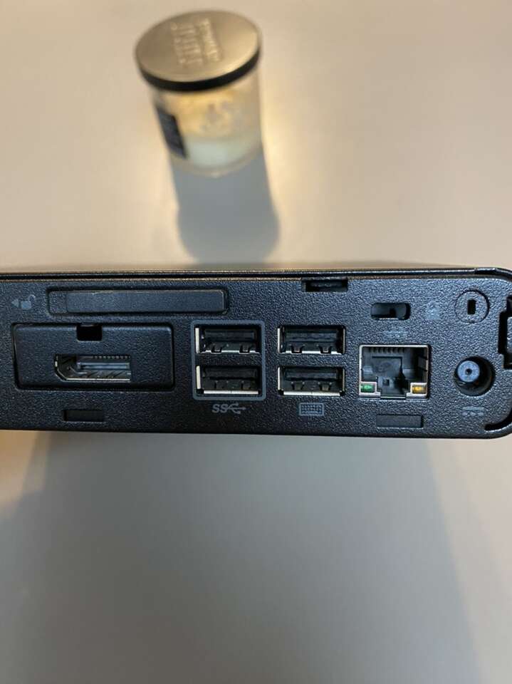 For sale is a used HP EliteDesk 800 G3. It has a 256 GB NVMe SSD and 8GB of RAM. It has a 7th generation i7 CPU. It comes installed with a wifi card and antenna. 6 USB ports, 1 USB-C port. 3 DisplayPort outputs and an Ethernet port. Power supply included. Windows 10 Pro is installed. Will run Windows 11 with manual install. Great condition.