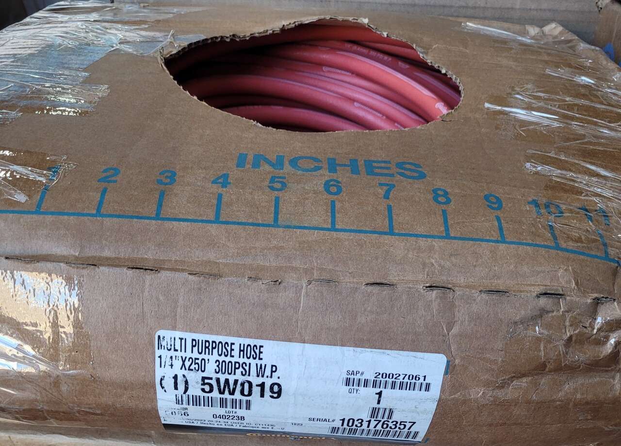 This hose is compatible with Speedaire brand tools and will fit a variety of models, including the 5W019. The bright red color makes it easy to spot in a busy workshop, and the 4" diameter and 12" height make it easy to handle and store. Trust this reliable air hose for all your DIY projects and professional needs.