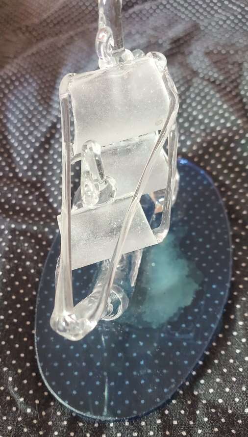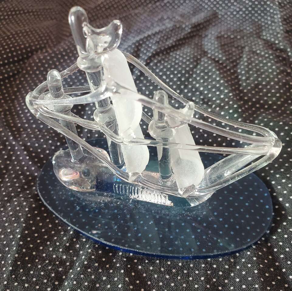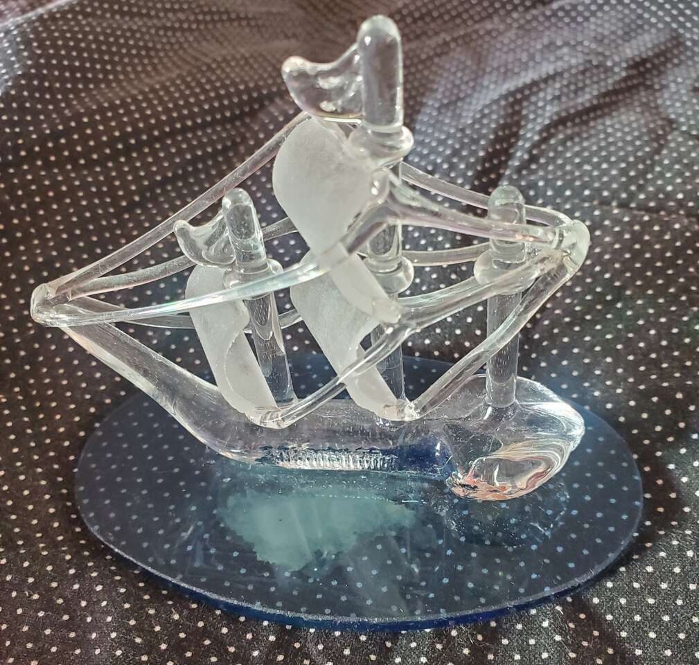 Beautiful small ship boat crystal glass figurine that has a blue bottom. Measures to 4" x 2". In wonderful condition, no cracks or breaks. We take venmo or cash.