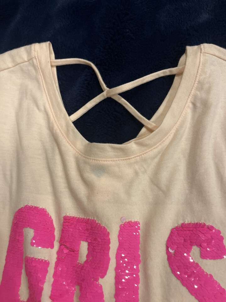 Brand new with tags Old Navy Size: Girls XL (14) Graphic is sequins- you can turn it either direction for different colors. Short sleeve 60% cotton 50% polyester V cross on the back Crew neck in the front