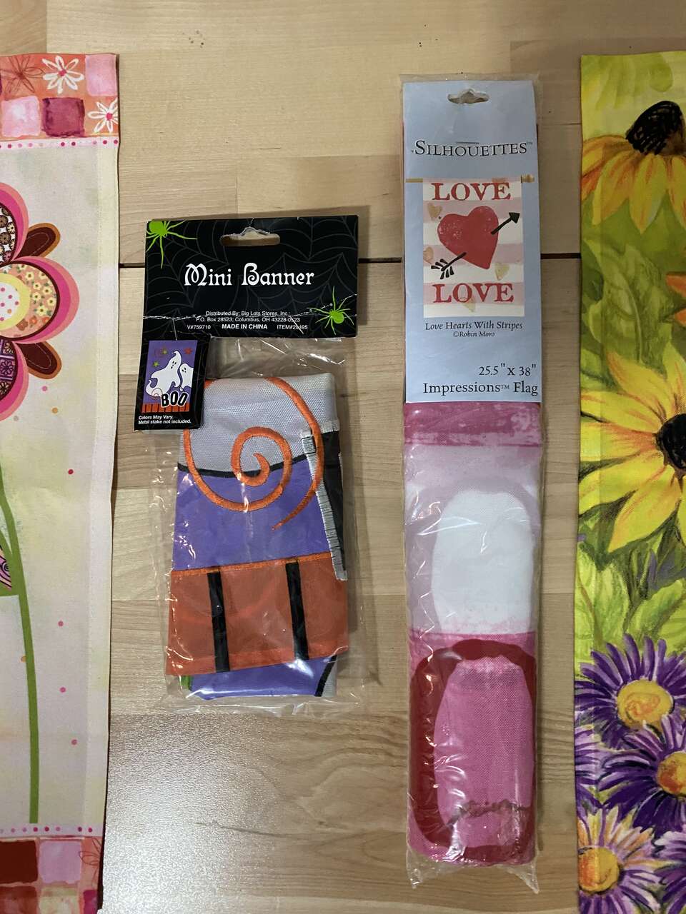 The Valentines flag is large 25 1/2" x 38". The other flags are normal size garden flags. (Halloween, spring & summer flags)