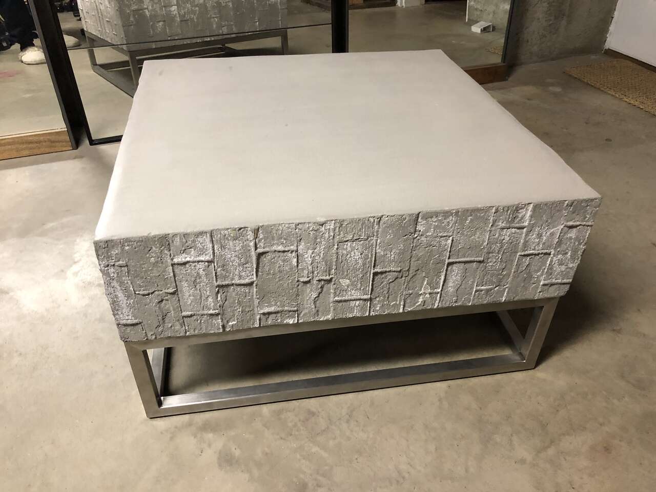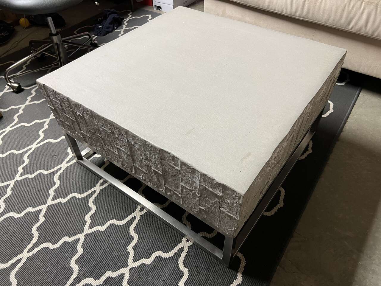 West Elm concrete coffee table.