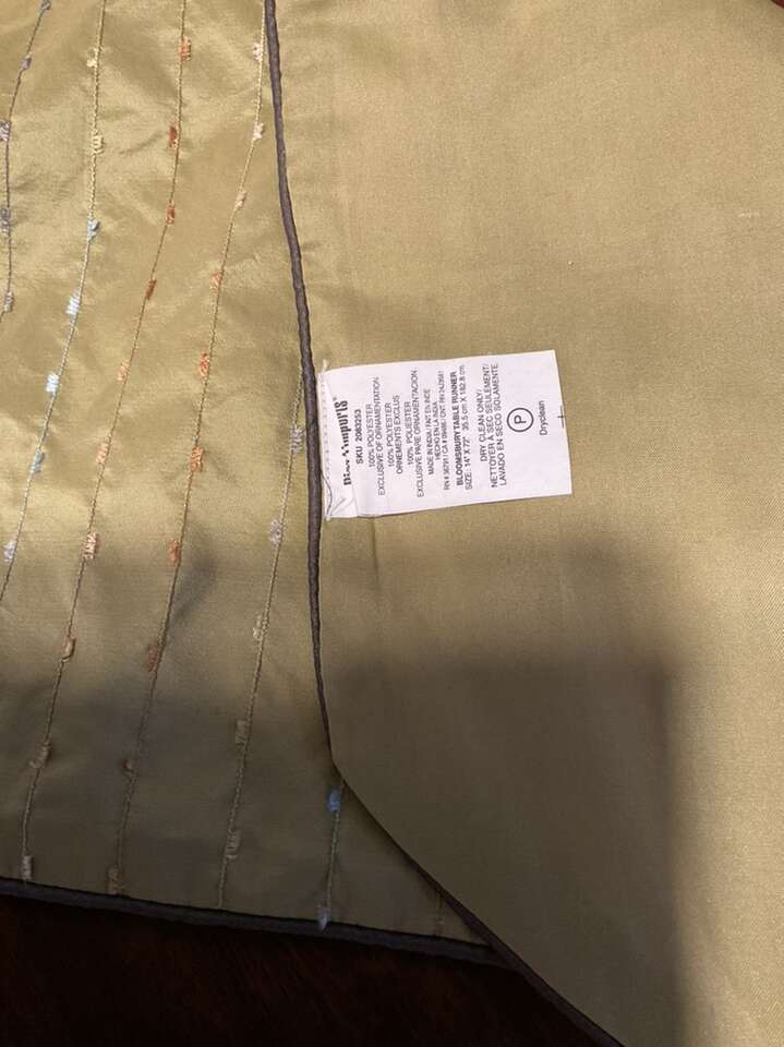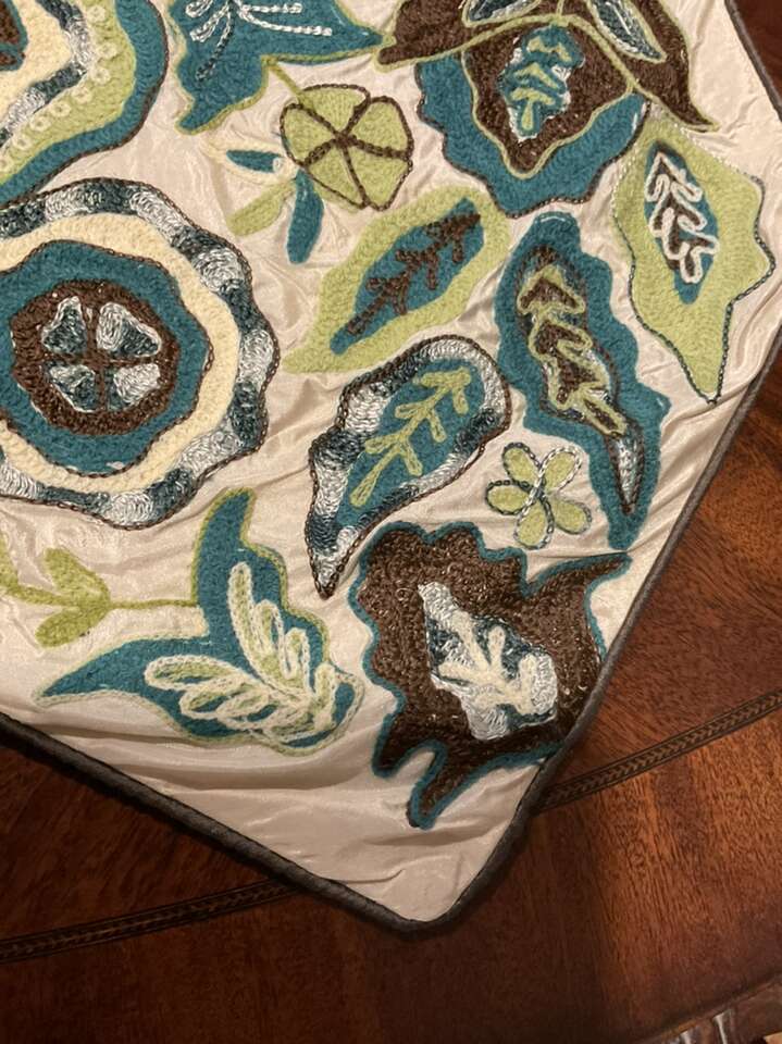 Beautiful table runner perfect for summer/ spring. It is new from pier 1. The size is 6 feet x 14 inches