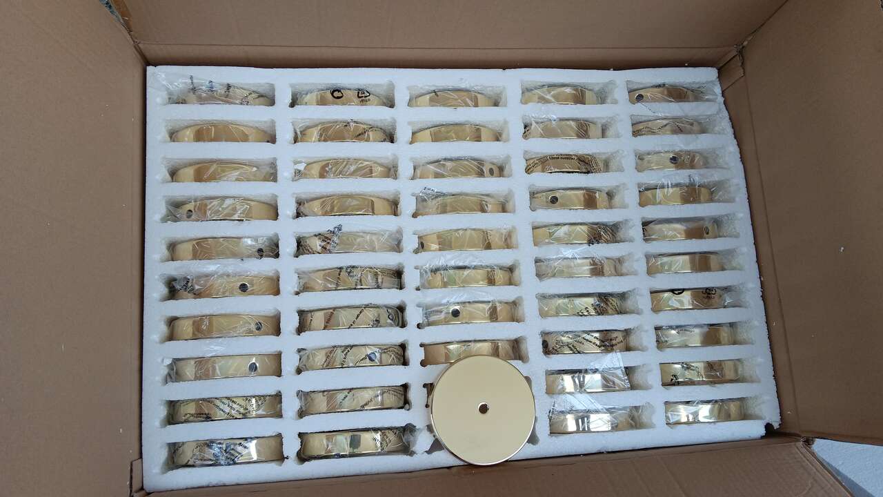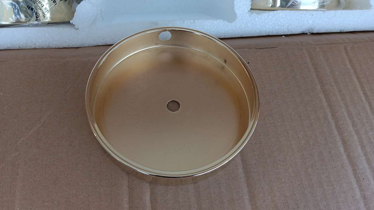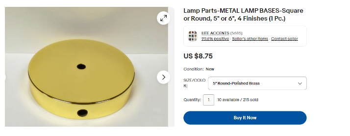 VenmoNew, in a box. 5 in polished brass base with slip through center hole and wire way to allow for the wire to exit.