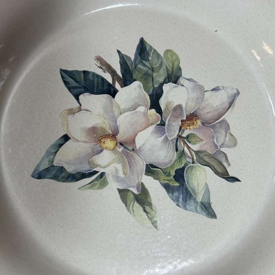 NEW Old Stock vintage Gardenia Stoneware PLATE is transfer-ware by “Home & Garden Party”. Dated 2000. The edges of the plate are sponged with traditional colonial blue, & the bottom is not glazed. They have tall borders for a plate- almost a shallow pie plate, & are 10” in diameter. Photographs are of the exact item you are buying. No chips, cracks, scratches or defects. Smoke free. Delivery available to a convenient location when in your area for $5.