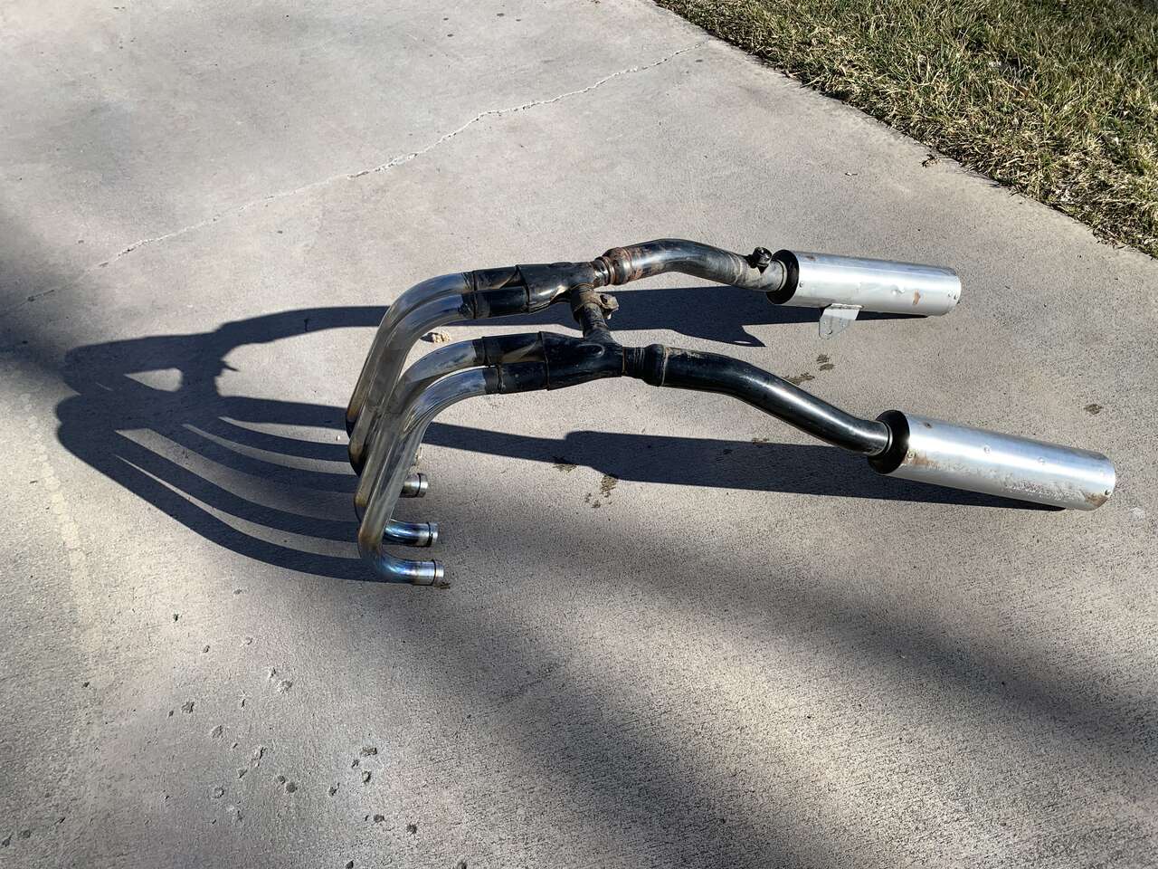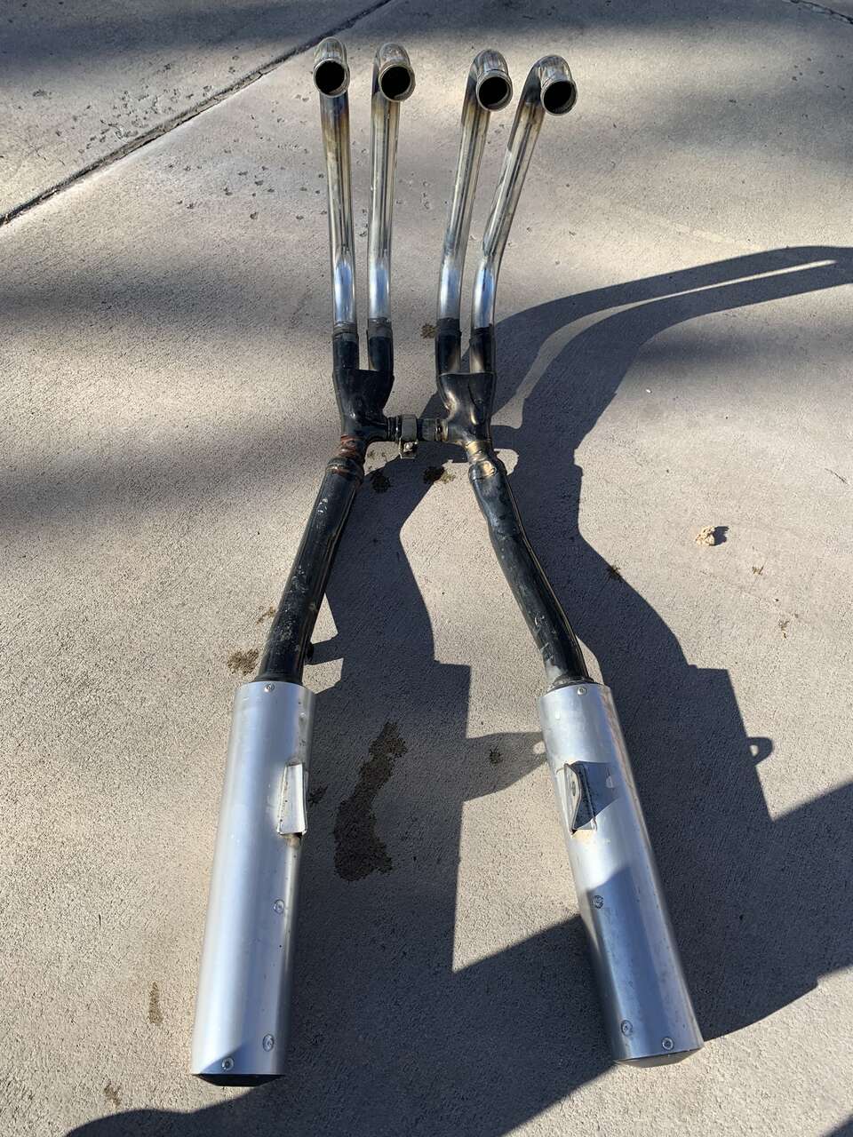 This exhaust set is in good condition, not rusted or dented, does have road rash on sides of mufflers. May fit other models.