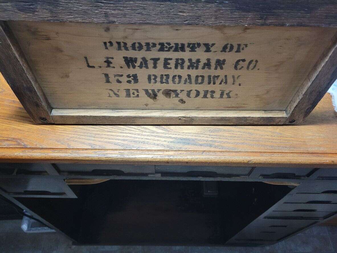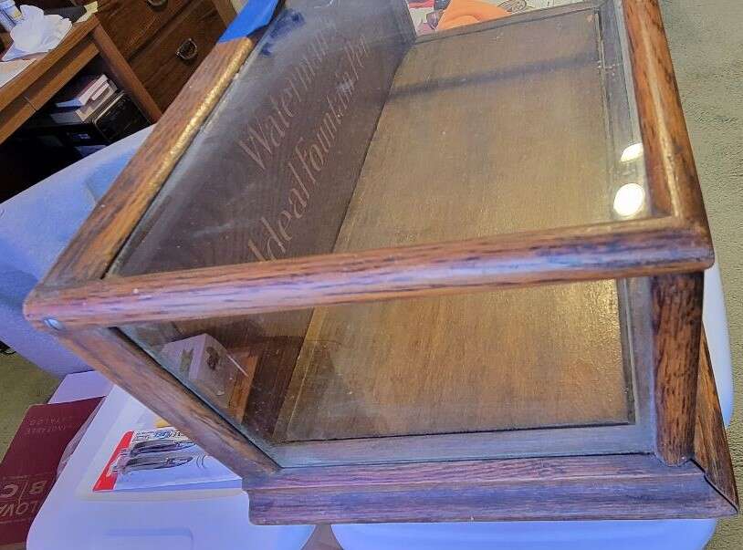 I'm selling this Used Vintage Waterman Fountain Pen Display Case. The case is in very good condition. There is some separation on the bottom, but that should be an easy fix. The glass is intact, and the graphics are very nice. The case is 16 inches long by 8 inches wide and 5” inches deep. If you collect fountain pens, this will make a nice display case for them. Great looking case for your collectables.