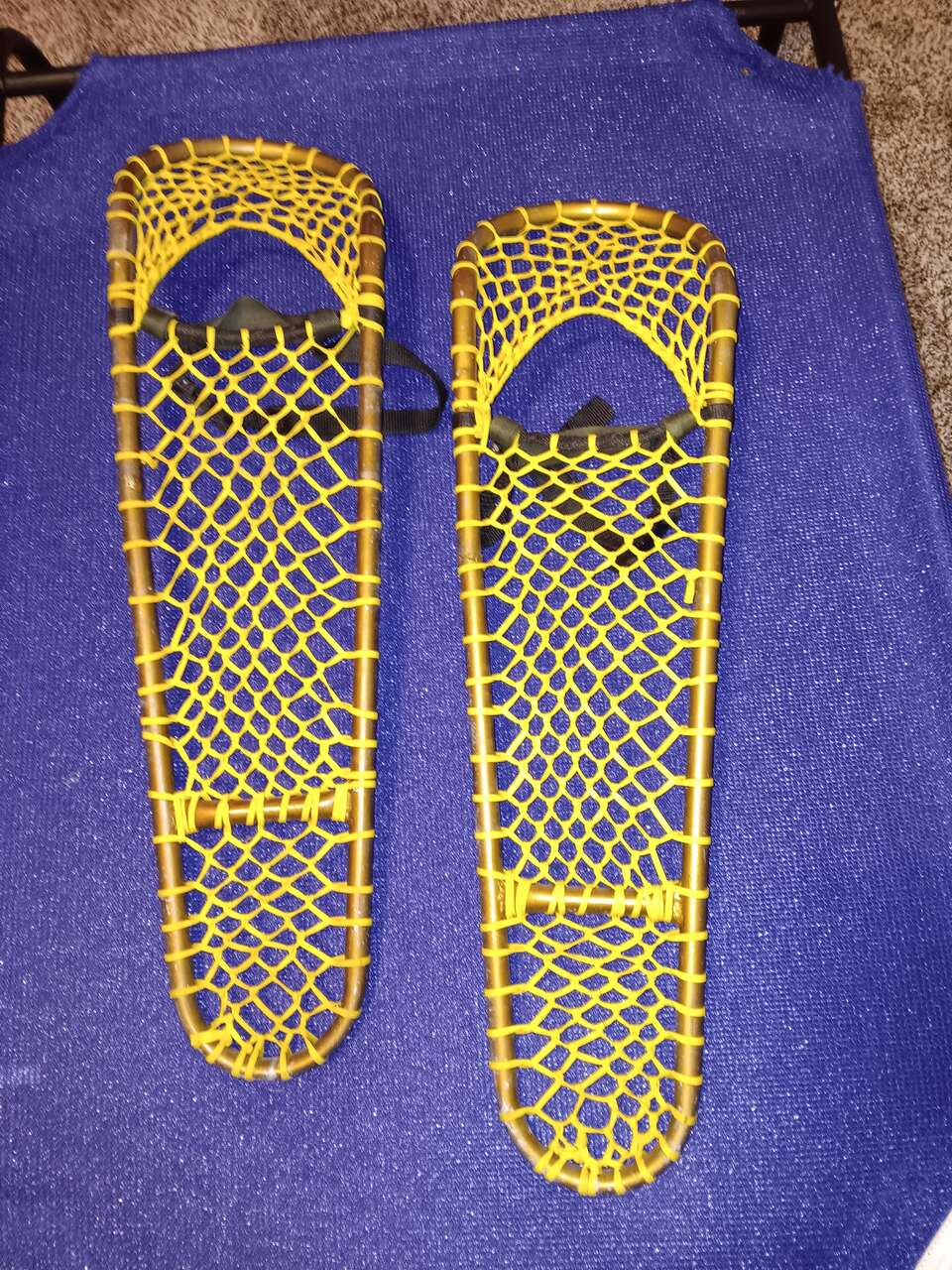 Vintage aluminum snow shoes that you can use for decoration or actually use them.