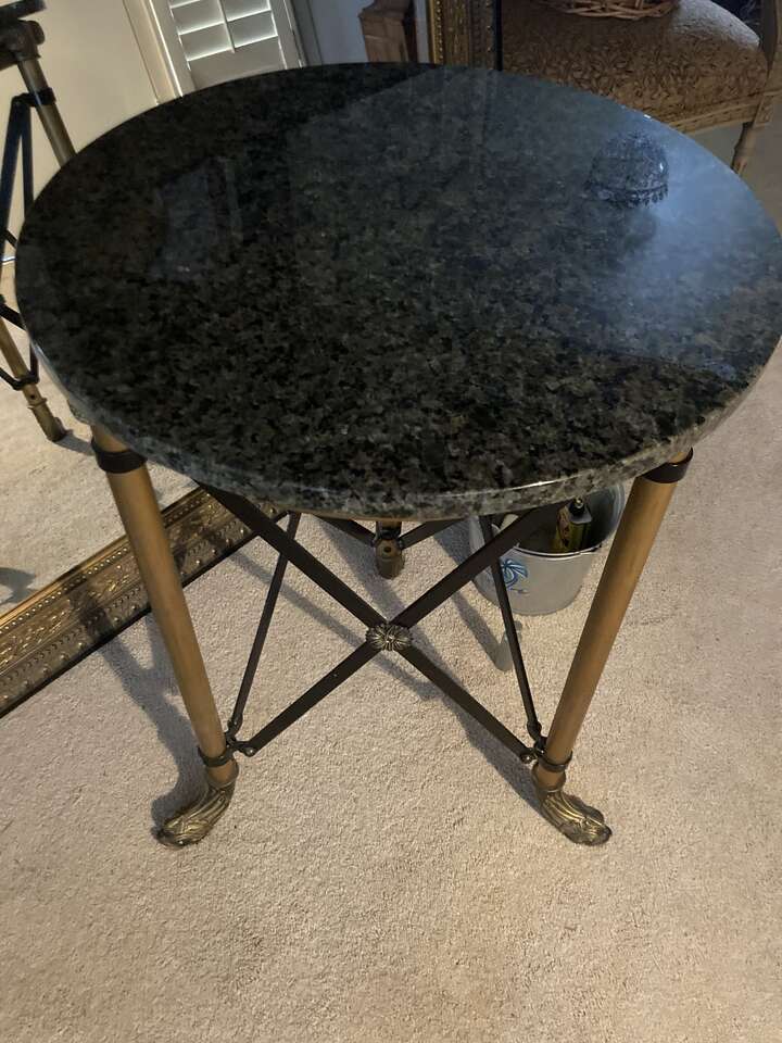 Venmo1920's French Neoclassical Style Marble Bronze Accent Table Very Nice Bronze Fish Detail With 3 Fish Cape Legs The Top Of The Table is Marble. 20" Wide 20" Deep 29" High.