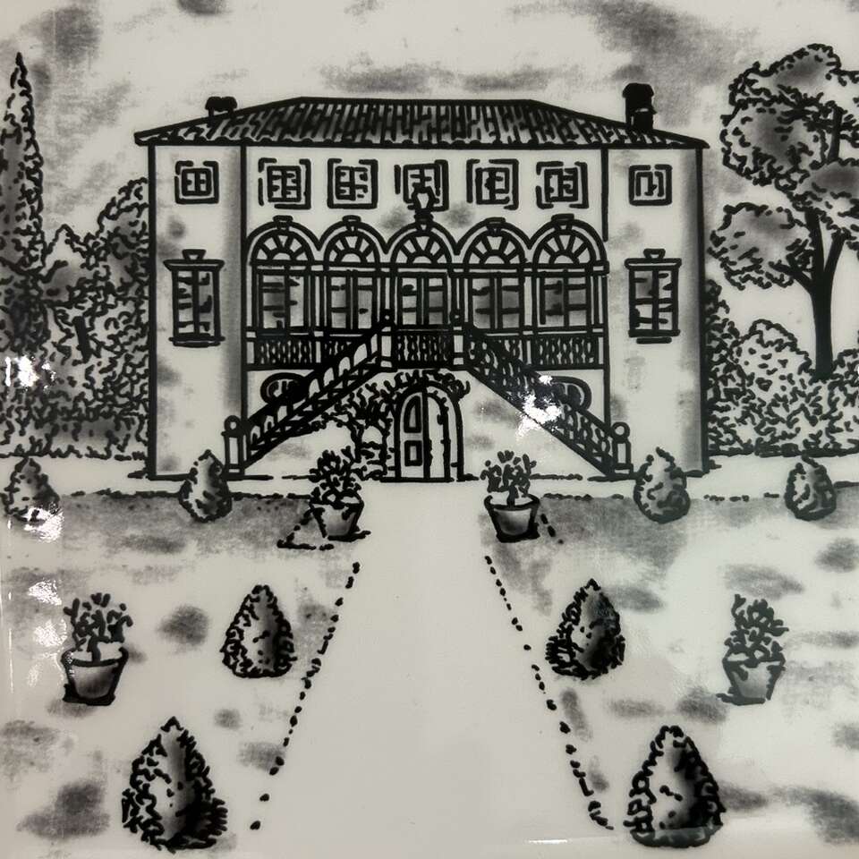 Popular Brunelli black & white display Plate for wall or cupboard of a an Italian or French Chateaux Estate. In pristine new condition: No chips, cracks, crazing, scratches or defects. 7.5” square. Delivery available to a convenient location when in your area for &5. Lead Glass hand cut vase in first photo is also for sale in separate listing.