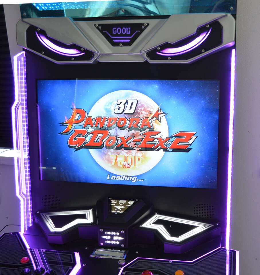 This is a very good-looking, lighted Pandora JAMMA cabinet with an Infinity Marquee. You can change the color of the lights or have it do a light show.