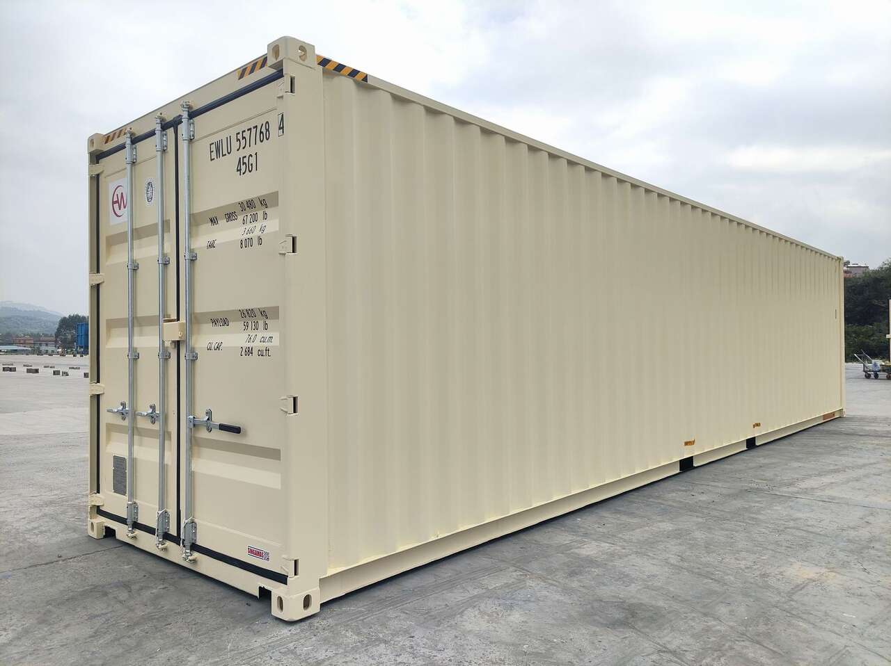 This listing is for a New, Single Trip, 40' High Cube Container with Double Doors that measures 40' long x 8' wide x 9' 6" tall and has a set of doors on both ends of the container that seal completely to keep pests, rodents, dust, snow and water out. Doors on both ends allows better access to your stuff.