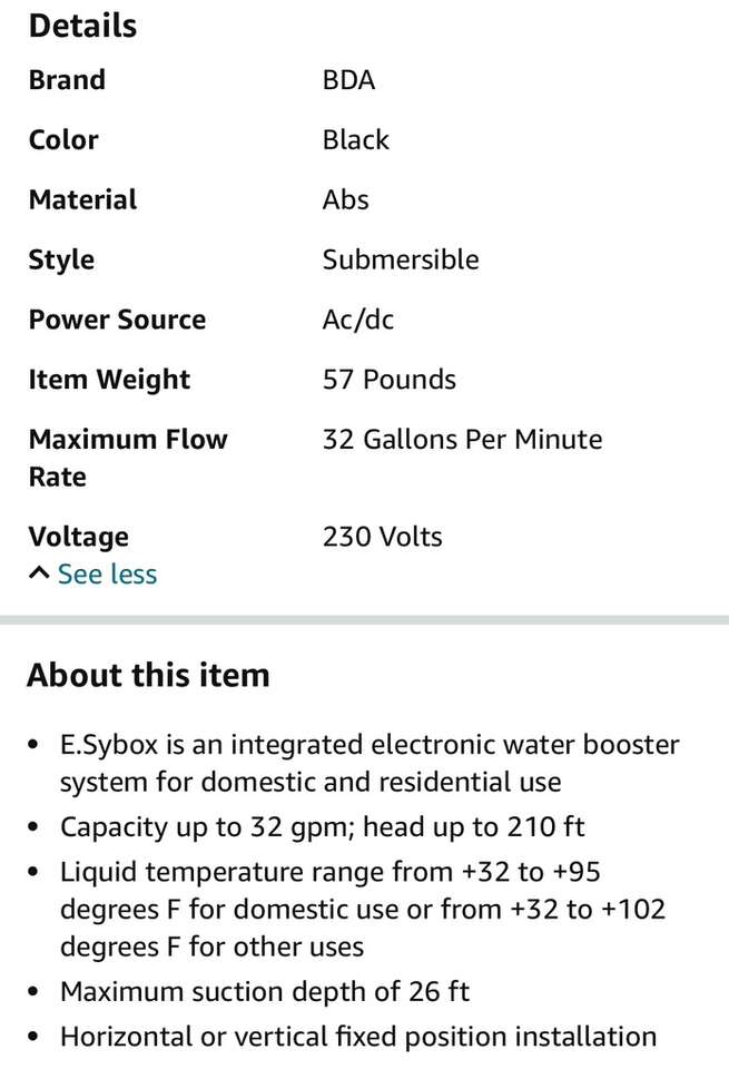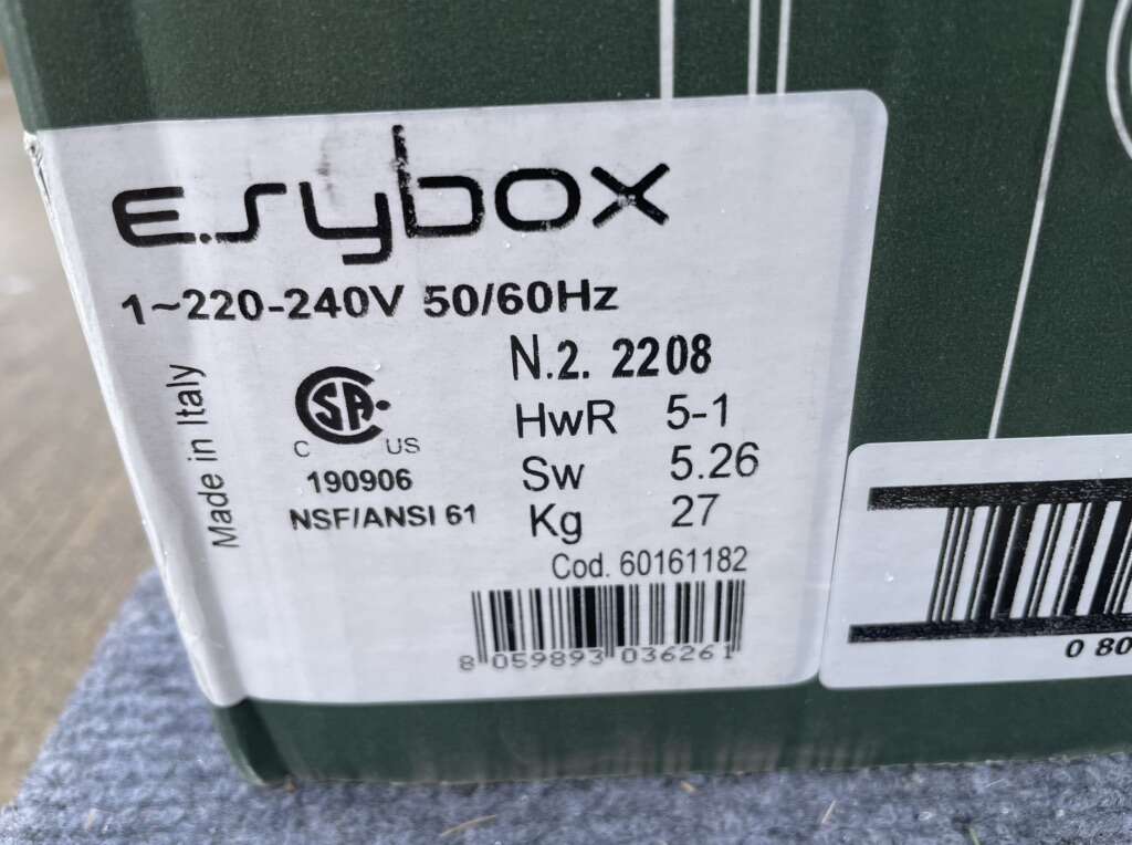 Description- E.Sybox 220-240V 50/60Hz integrated electronic water booster system. Made in Italy. See photos for more product information and specifications.