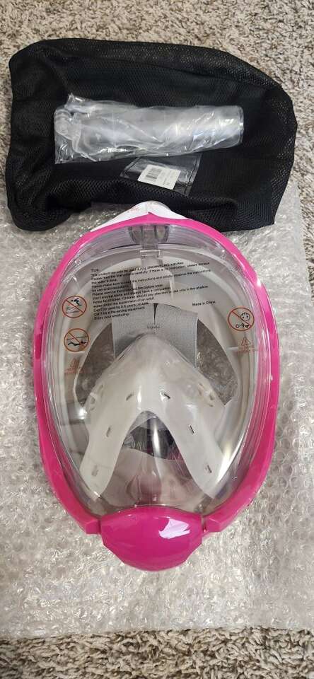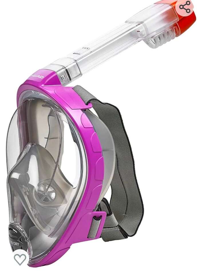 Vaincre 180 Full Face Snorkel Mask with Panoramic View Anti-Fog, Anti-Leak with Adjustable Head Straps - See Larger Viewing Area Than Traditional Masks for Kids, Youth and Adult Panoramic Purple Small/Medium. NEW.