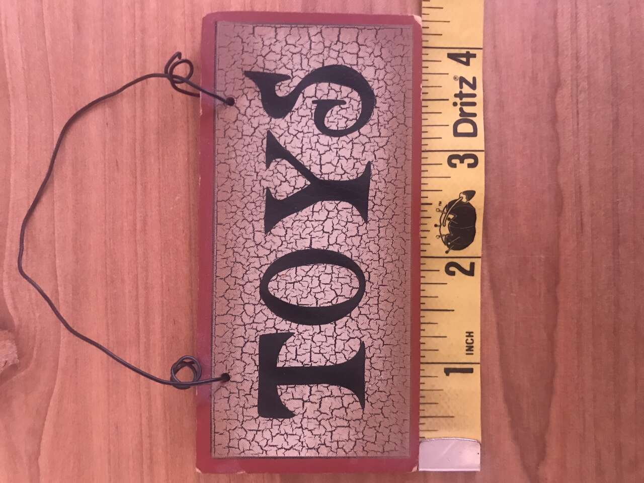 Lot of 2 TOYS Wood distressed Sign ANTIQUE store Advertising hanging Metal wire dollhouse doll toy